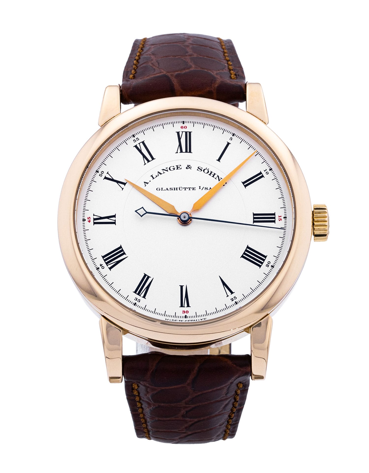 Today one of the most revered and prestigious watch brands on the market, A. Lange & Söhne was founded in 1845 by Ferdinand Lange in the Saxon village of Glashütte. But the company owed its success not just to Ferdinand's watchmaking genius, but also to that of his sons, one of whom, Richard, became joint owner in 1868 — hence the brand's name. Richard Lange is known particularly for the invention of a balance spring made with a beryllium alloy that is still in use in many watches today. The modern company named one of its finest collections after Richard, a superb example of which is here available in rose gold.