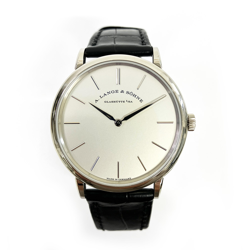 This A. Lange and Sohne Saxonia Thin 201.027 has a silver baton dial and a leather strap. This A. Lange and Sohne has undergone a thorough inspection of water resistance, accuracy, functionality and condition to determine the level of reconditioning required to meet our strict standards. It has also been referenced against technical documents and manufacturer records where available to ensure authenticity and a clean history. All our watches have a 24-month warranty for your peace of mind.