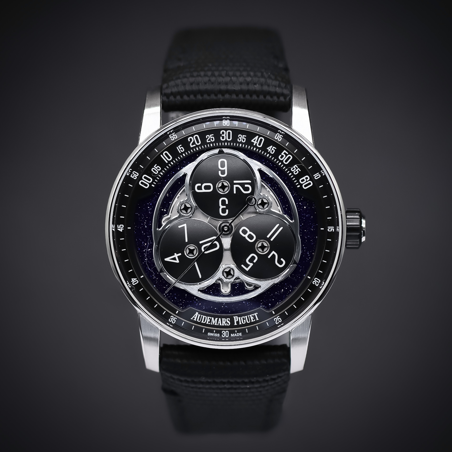 This Audemars Piguet CODE 11.59 15212NB.OO.A002KB.01 has a blue aventurine dial and a fabric strap. This Audemars Piguet has undergone a thorough inspection of accuracy, functionality and condition at our Audemars Piguet certified service centre to determine the level of reconditioning required to meet our strict standards. It has also been checked against our records to ensure authenticity. Our watches have a 24-month warranty for your peace of mind, in conjunction with any remaining manufacturer’s warranty from new or from service.