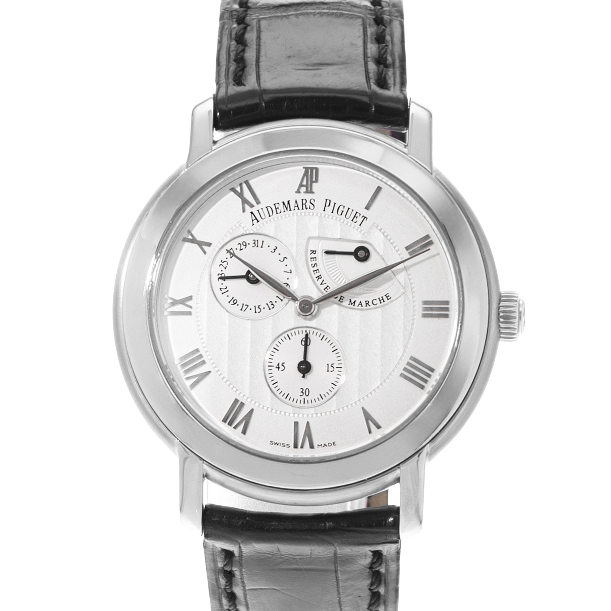 This Audemars Piguet Jules Audemars 25955BC.OO.D002CR.01 has a white roman numeral dial and a leather strap. This Audemars Piguet has undergone a thorough inspection of accuracy, functionality and condition at our Audemars Piguet certified service centre to determine the level of reconditioning required to meet our strict standards. It has also been checked against our records to ensure authenticity. All our watches have a 24-month warranty for your peace of mind.
