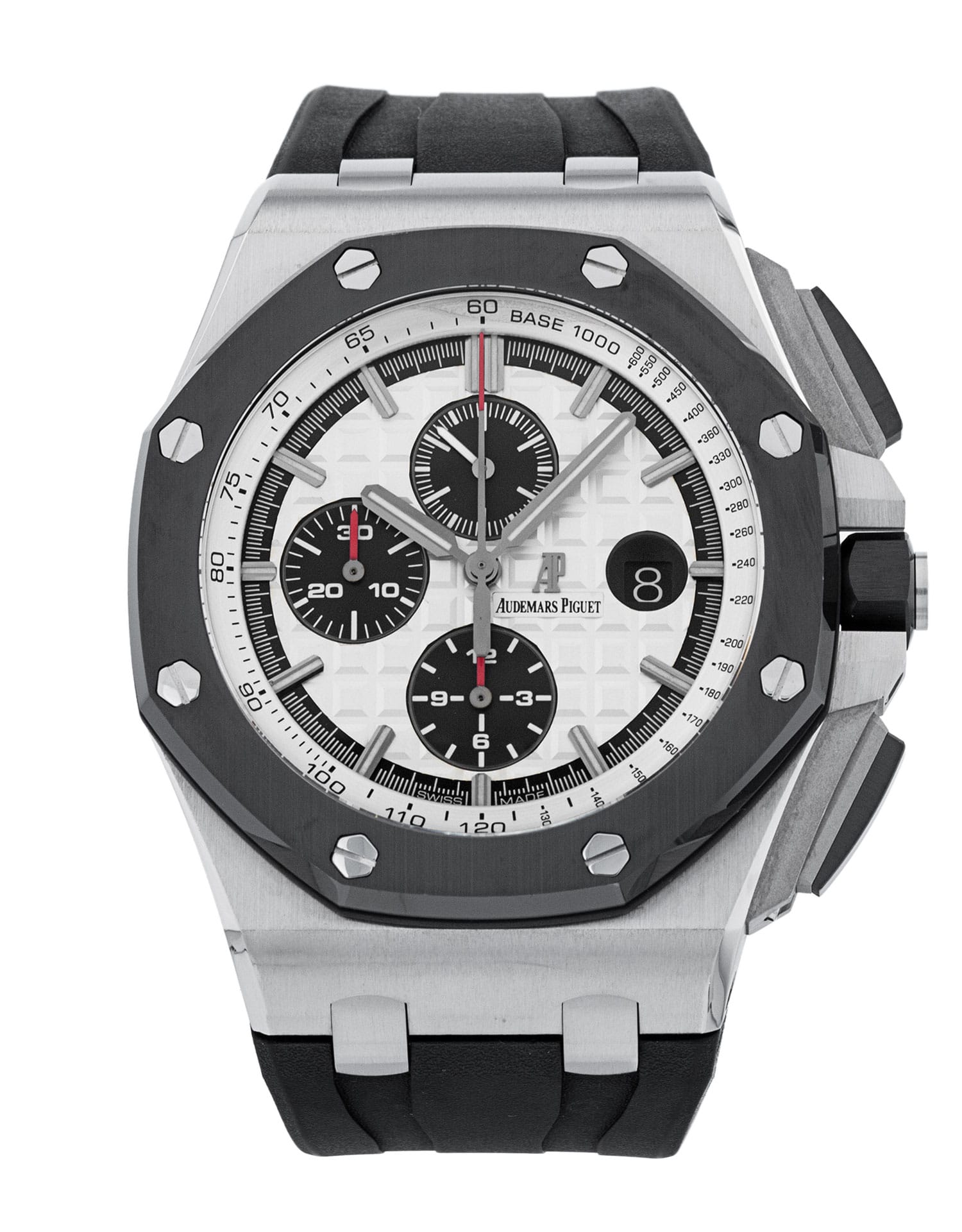 This Audemars Piguet Royal Oak Offshore 26400SO.OO.A002CA.01 has a silver baton dial and a rubber strap. This Audemars Piguet has undergone a thorough inspection of accuracy, functionality and condition at our Audemars Piguet certified service centre to determine the level of reconditioning required to meet our strict standards. It has also been checked against our records to ensure authenticity. All our watches have a 24-month warranty for your peace of mind.