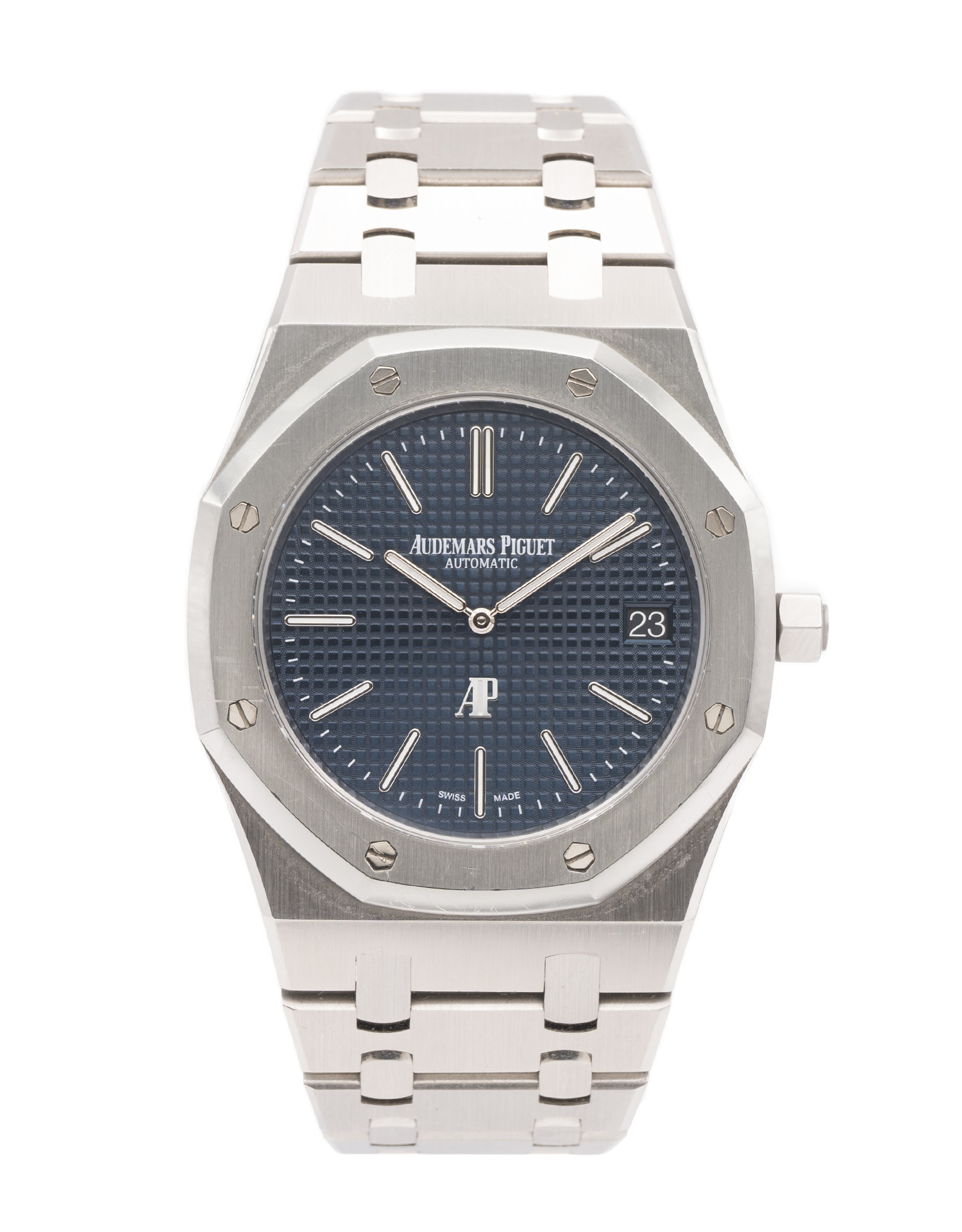 This Audemars Piguet Royal Oak 15202ST.OO.1240ST.01 has a blue baton dial and a bracelet strap. This Audemars Piguet has undergone a thorough inspection of accuracy, functionality and condition at our Audemars Piguet certified service centre to determine the level of reconditioning required to meet our strict standards. It has also been checked against our records to ensure authenticity. All our watches have a 24-month warranty for your peace of mind.