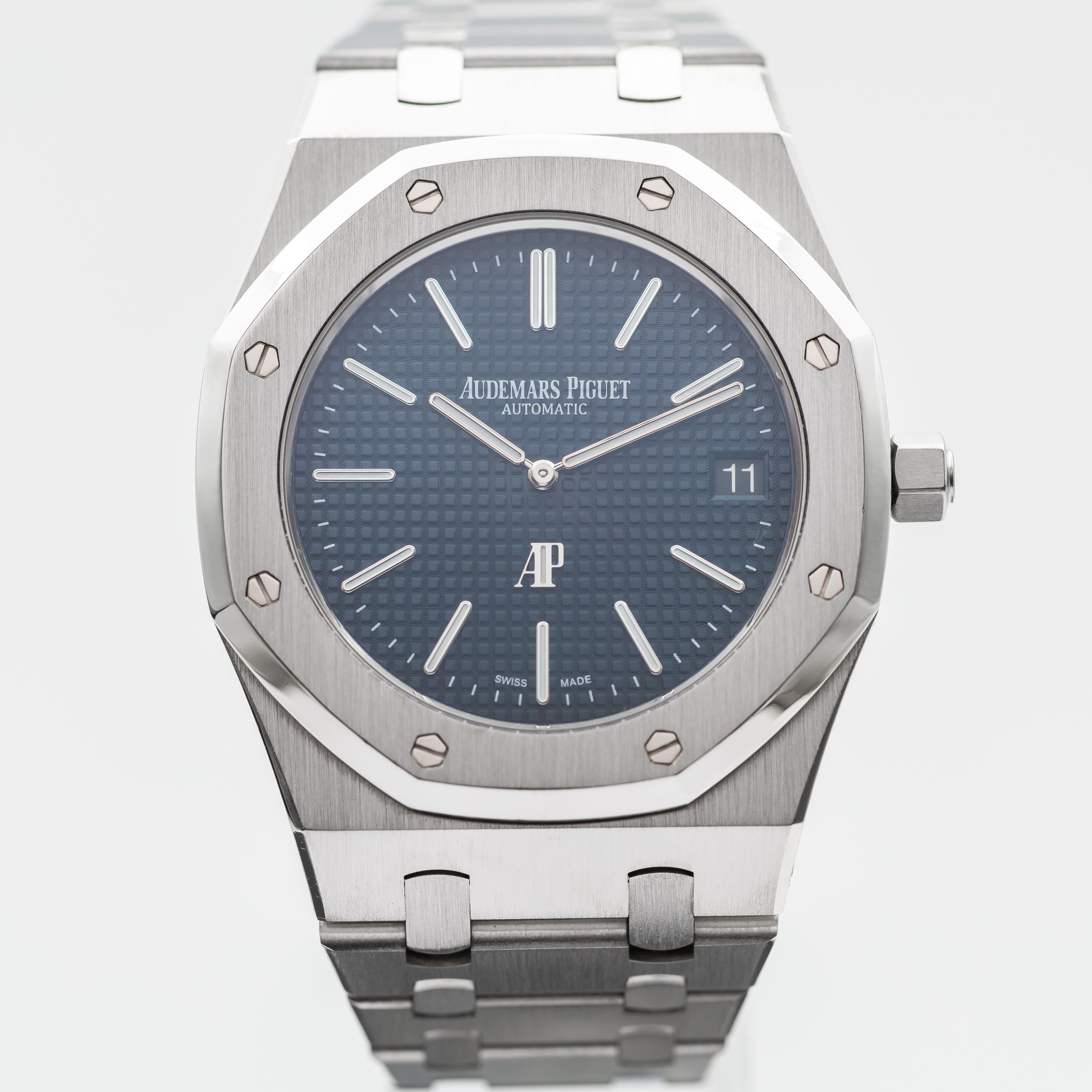 This Audemars Piguet Royal Oak 15202ST.OO.1240ST.01 has a blue baton dial and a bracelet strap. This Audemars Piguet has undergone a thorough inspection of accuracy, functionality and condition at our Audemars Piguet certified service centre to determine the level of reconditioning required to meet our strict standards. It has also been checked against our records to ensure authenticity. All our watches have a 24-month warranty for your peace of mind.