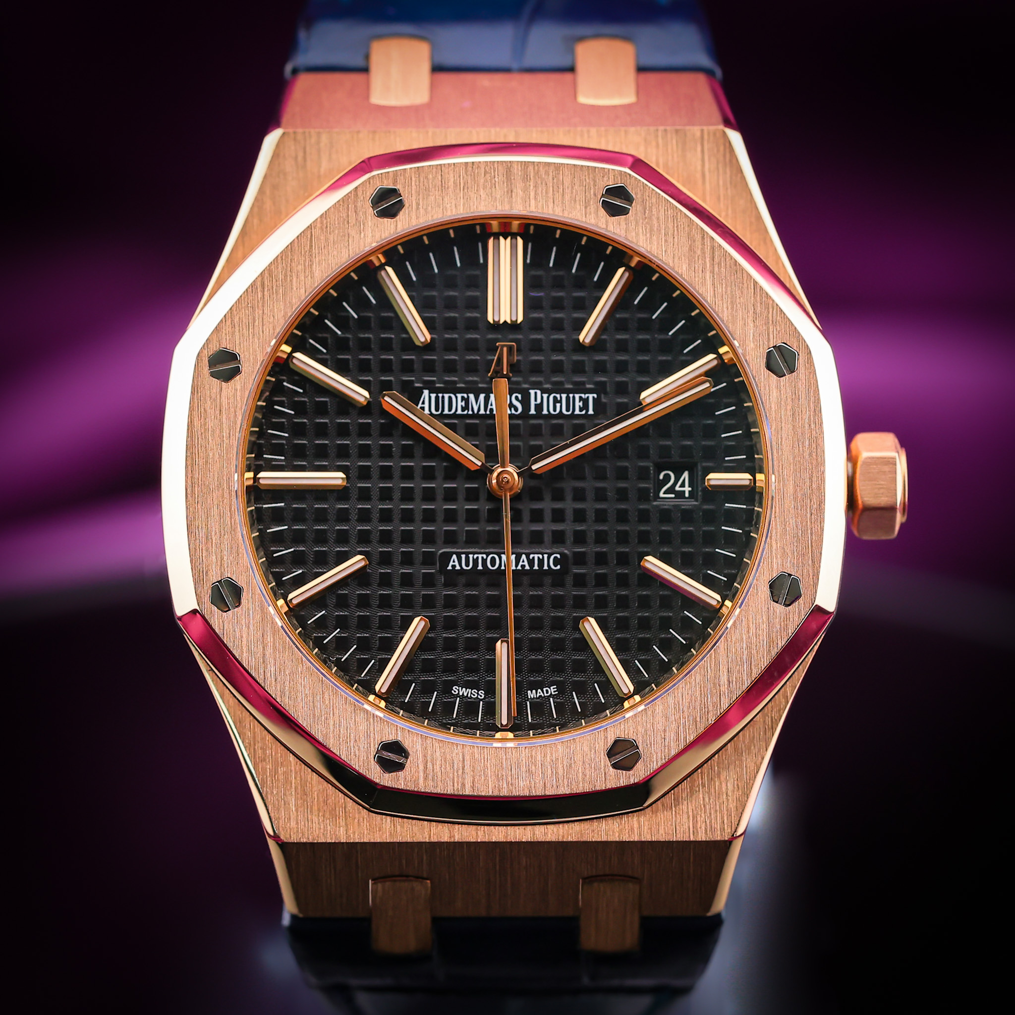 The original 1972 Audemars Piguet Royal Oak was designed by Gerald Genta as a last chance effort to pull the company out from economic woes that began in the Great Depression. Pushing watch design to a new level, the Royal Oak was the first watch targeted at the luxury market that was made in stainless steel. Steel is now well-established in high-end watchmaking, but it's easy to forget that before the Royal Oak, gold was considered the only really acceptable case material. The bold risk paid off, as the new watch's forward-thinking design paired with second-to-none engineering made it an enduring classic. Today, it remains one of the most iconic sports watches in production, easily recognisable by its octagonal bezel screwed down at each corner to a strongbox case, and by the grid-like “Grande Tapisserie” pattern on the dial of most models.