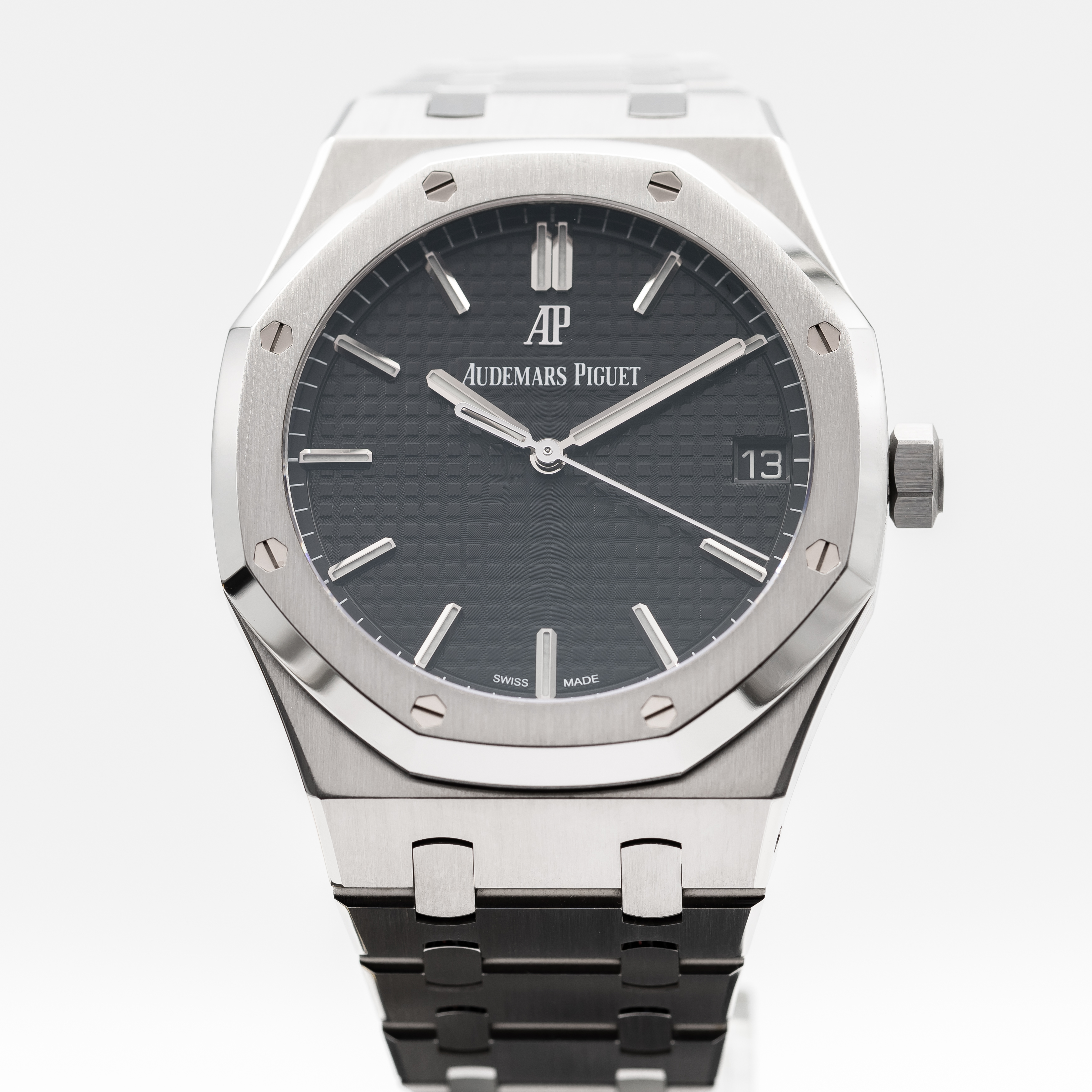 This Audemars Piguet Royal Oak 15500ST.OO.1220ST.03 has a black baton dial and a bracelet strap. This Audemars Piguet has undergone a thorough inspection of accuracy, functionality and condition at our Audemars Piguet certified service centre to determine the level of reconditioning required to meet our strict standards. It has also been checked against our records to ensure authenticity. All our watches have a 24-month warranty for your peace of mind.