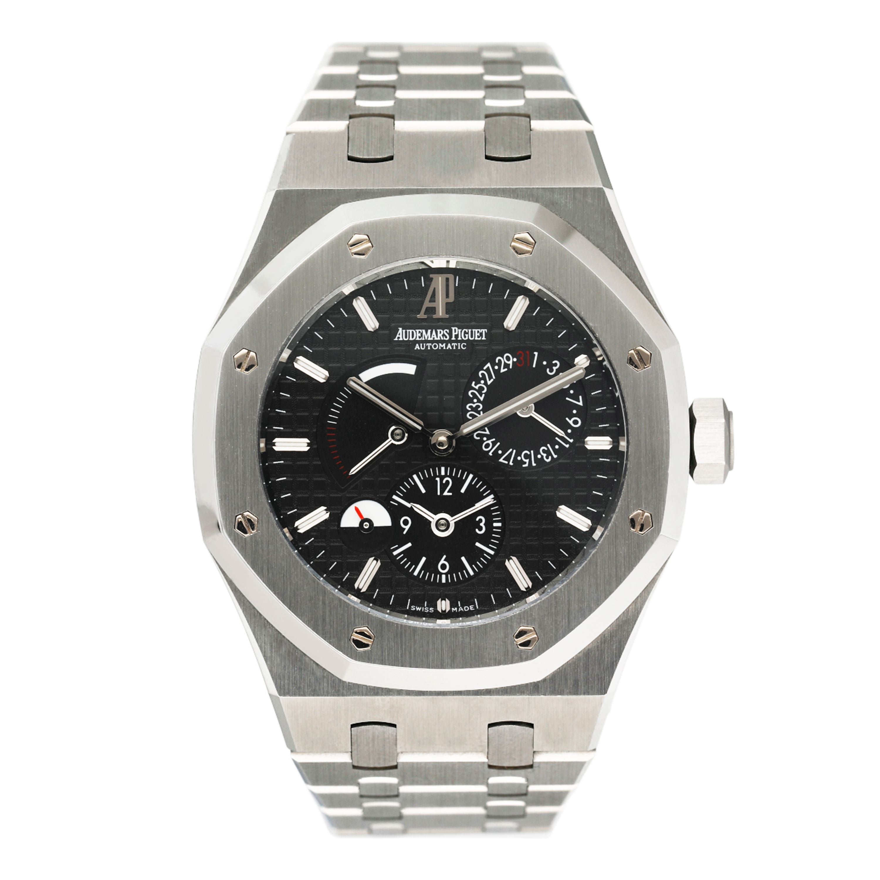 Audemars Piguet's legendary Royal Oak caused huge upset to the watch industry when it debuted at Baselworld 1972. A luxury watch – with luxury pricing to match – the Royal Oak had a steel case with an integrated bracelet, and an unprecedented octagonal design by the renowned Gerald Genta. It managed to be both sporty and utterly elegant. This breathtaking boldness was a risky strategy at the time, but it has proved an enduring classic that swiftly became the brand's most iconic and distinguished collection, embodying the prestige and manufacturing prowess associated with the name Audemars Piguet. This stunning example has been augmented with impressive new complications, including a retrograde power reserve display and a second time zone, with its own smaller 24-hour subdial.