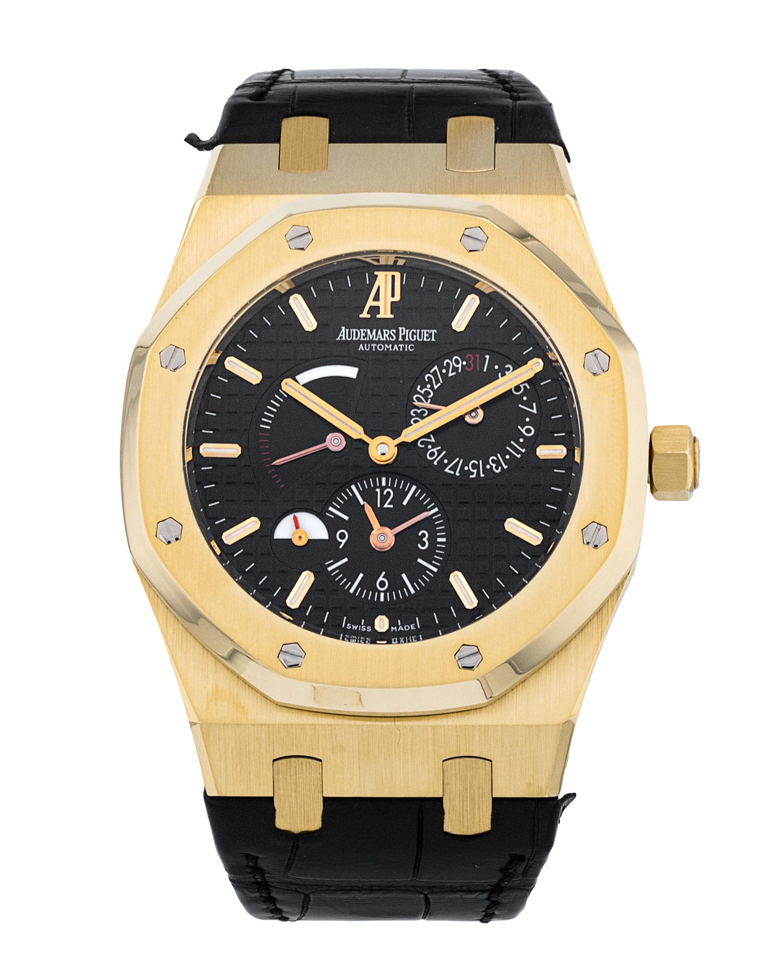 This Audemars Piguet Royal Oak 26120BA.OO.D088CR.01 has a black baton dial and a leather strap. This Audemars Piguet has undergone a thorough inspection of accuracy, functionality and condition at our Audemars Piguet certified service centre to determine the level of reconditioning required to meet our strict standards. It has also been checked against our records to ensure authenticity. All our watches have a 24-month warranty for your peace of mind.