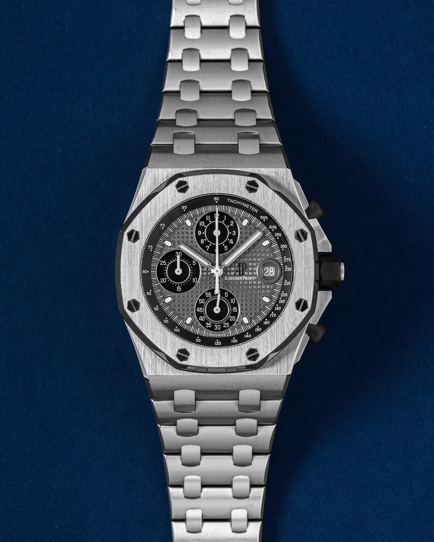 This Audemars Piguet Royal Oak 26238TI.OO.2000TI.01 has a grey dial and a bracelet strap. This Audemars Piguet has undergone a thorough inspection of accuracy, functionality and condition at our Audemars Piguet certified service centre to determine the level of reconditioning required to meet our strict standards. It has also been checked against our records to ensure authenticity. All our watches have a 24-month warranty for your peace of mind.