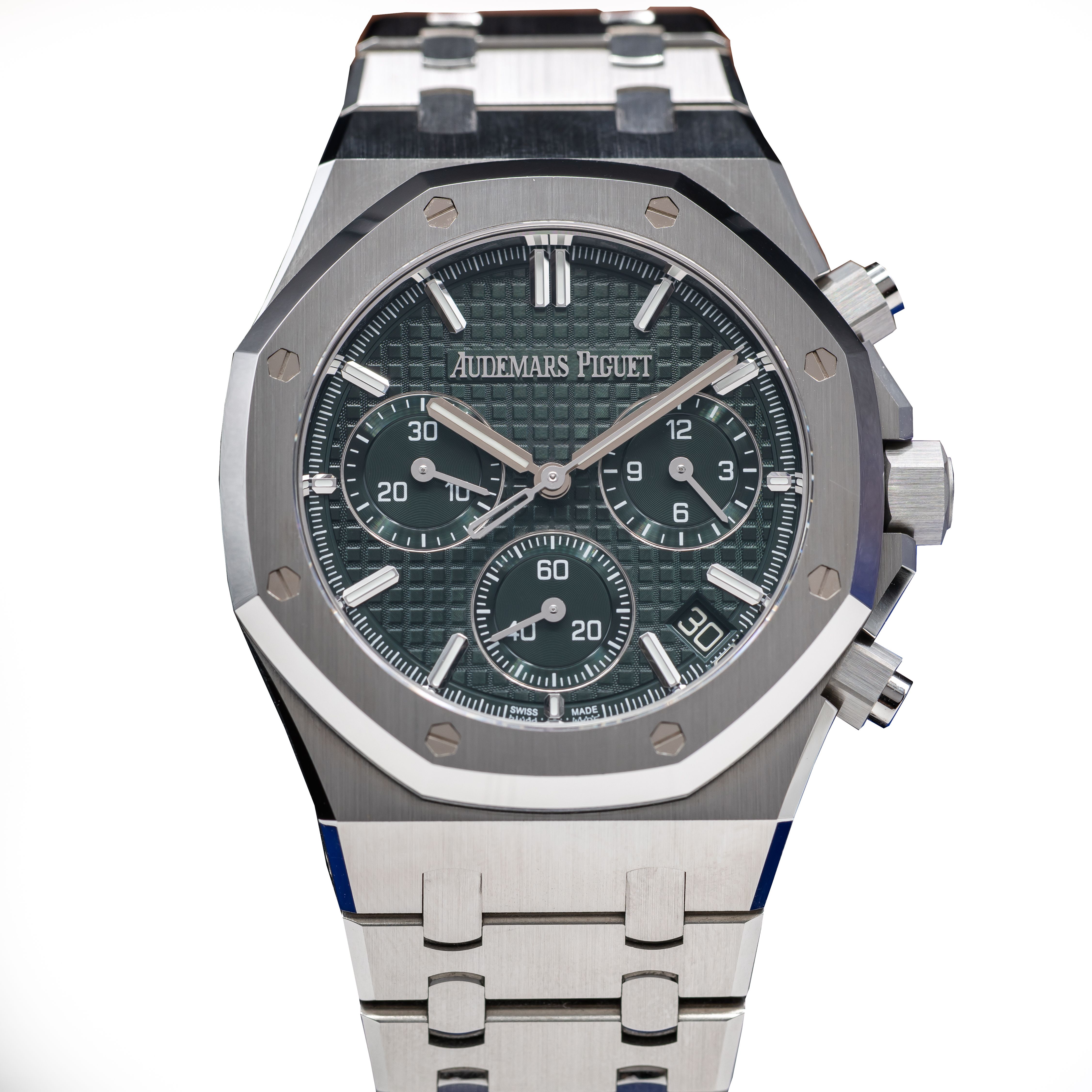 This Audemars Piguet Royal Oak 26240ST.OO.1320ST.04 has a khaki dial and a bracelet strap. This Audemars Piguet has undergone a thorough inspection of accuracy, functionality and condition at our Audemars Piguet certified service centre to determine the level of reconditioning required to meet our strict standards. It has also been checked against our records to ensure authenticity. Our watches have a 24-month warranty for your peace of mind, in conjunction with any remaining manufacturer’s warranty from new or from service.