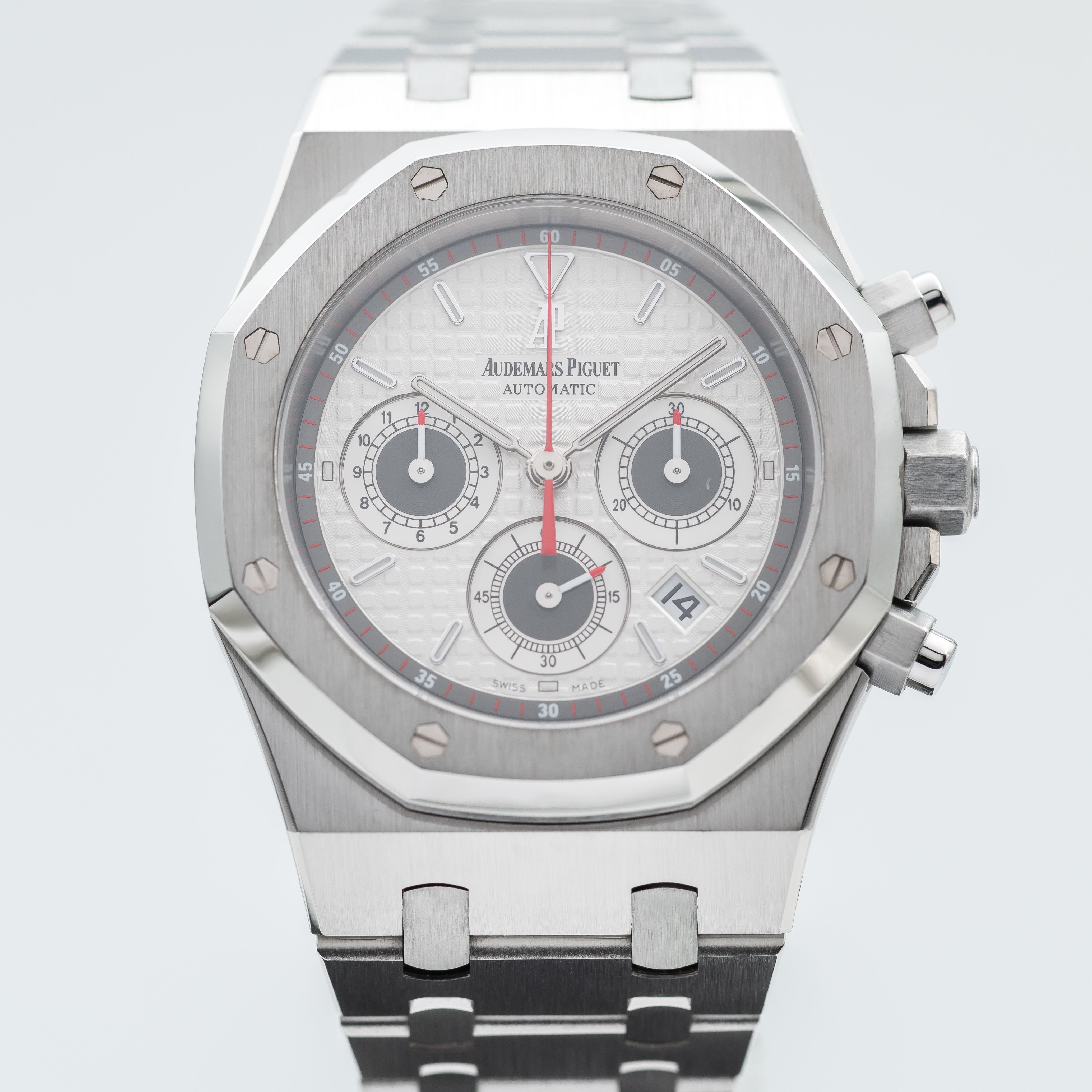 Audemars Piguet's legendary Royal Oak caused huge upheaval in the watch industry when it debuted at Baselworld 1972. A luxury watch with luxury pricing to match, the Royal Oak had a steel case with an integrated bracelet, and was the most expensive watch Audemars Piguet had ever produced, despite not being made from gold or featuring any complication. The unprecedented octagonal design by the renowned Gerald Genta was somehow both sporty and utterly elegant; this breathtaking boldness was a risky strategy at the time, but it has proved an enduring classic that swiftly became the brand's most iconic and distinguished collection, embodying the prestige and manufacturing prowess associated with the name Audemars Piguet.