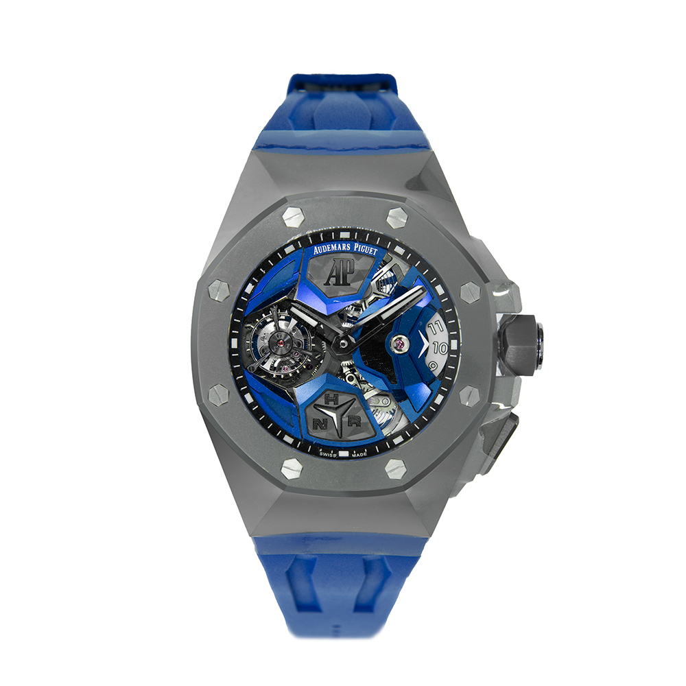 This Audemars Piguet Royal Oak 26589IO.OO.D030CA.01 has a skeleton dial and a rubber strap. This Audemars Piguet has undergone a thorough inspection of accuracy, functionality and condition at our Audemars Piguet certified service centre to determine the level of reconditioning required to meet our strict standards. It has also been checked against our records to ensure authenticity. All our watches have a 24-month warranty for your peace of mind.