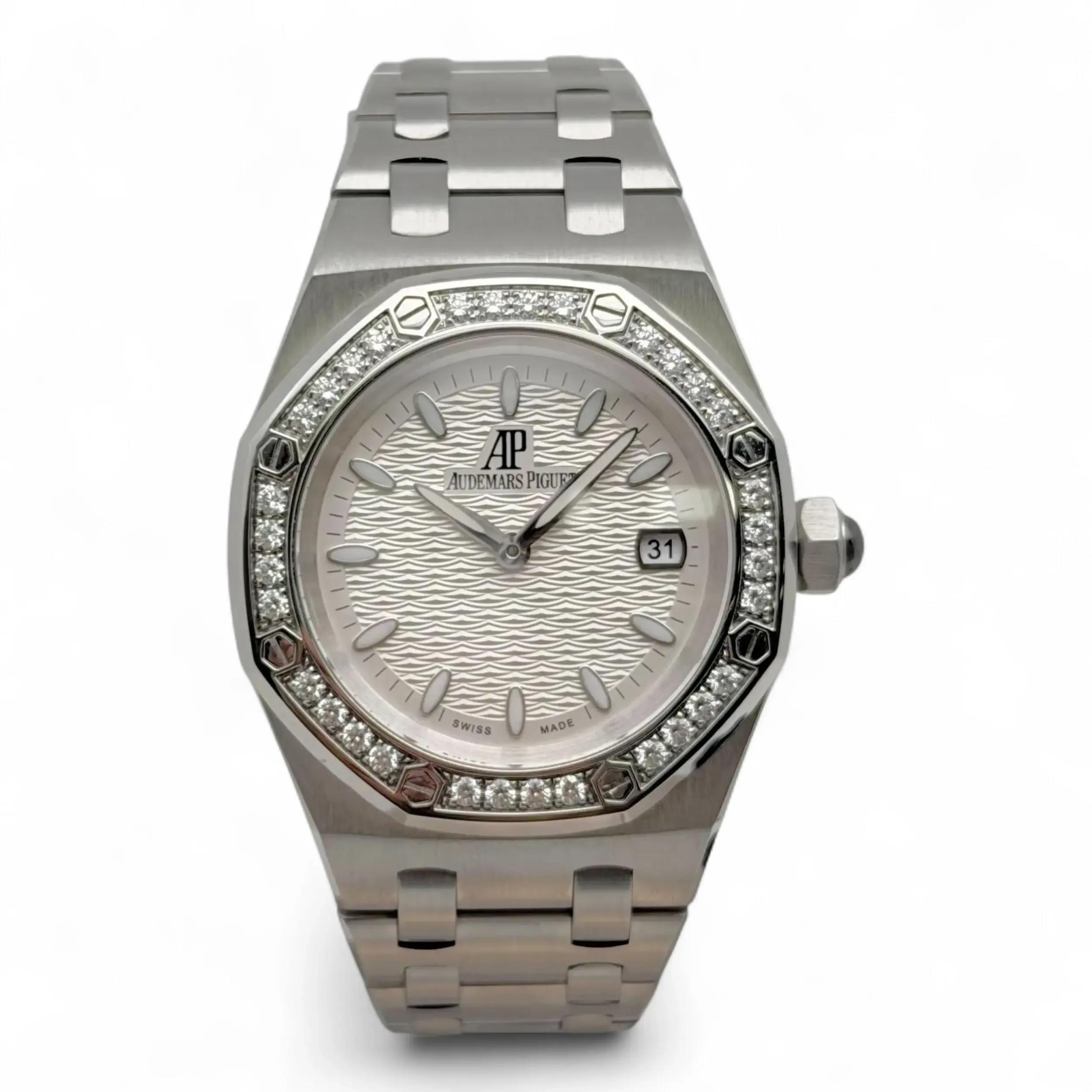 This Audemars Piguet Royal Oak 67601ST.ZZ.1210ST.01 has a silver baton dial and a bracelet strap. This Audemars Piguet has undergone a thorough inspection of accuracy, functionality and condition at our Audemars Piguet certified service centre to determine the level of reconditioning required to meet our strict standards. It has also been checked against our records to ensure authenticity. All our watches have a 24-month warranty for your peace of mind.
