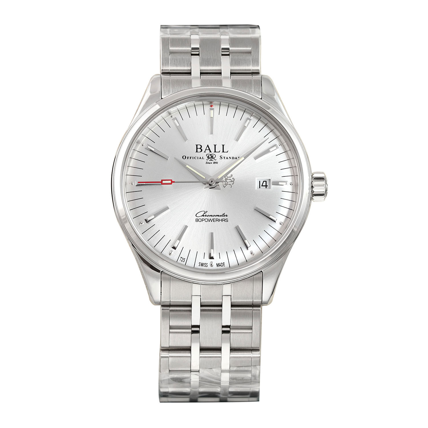 This Ball Trainmaster NM3280D-S1CJ-SL has a silver baton dial and a bracelet strap. This Ball has undergone a thorough inspection of water resistance, accuracy, functionality and condition to determine the level of reconditioning required to meet our strict standards. It has also been referenced against technical documents and manufacturer records where available to ensure authenticity and a clean history. Our watches have a 24-month warranty for your peace of mind, in conjunction with any remaining manufacturer’s warranty from new or from service.