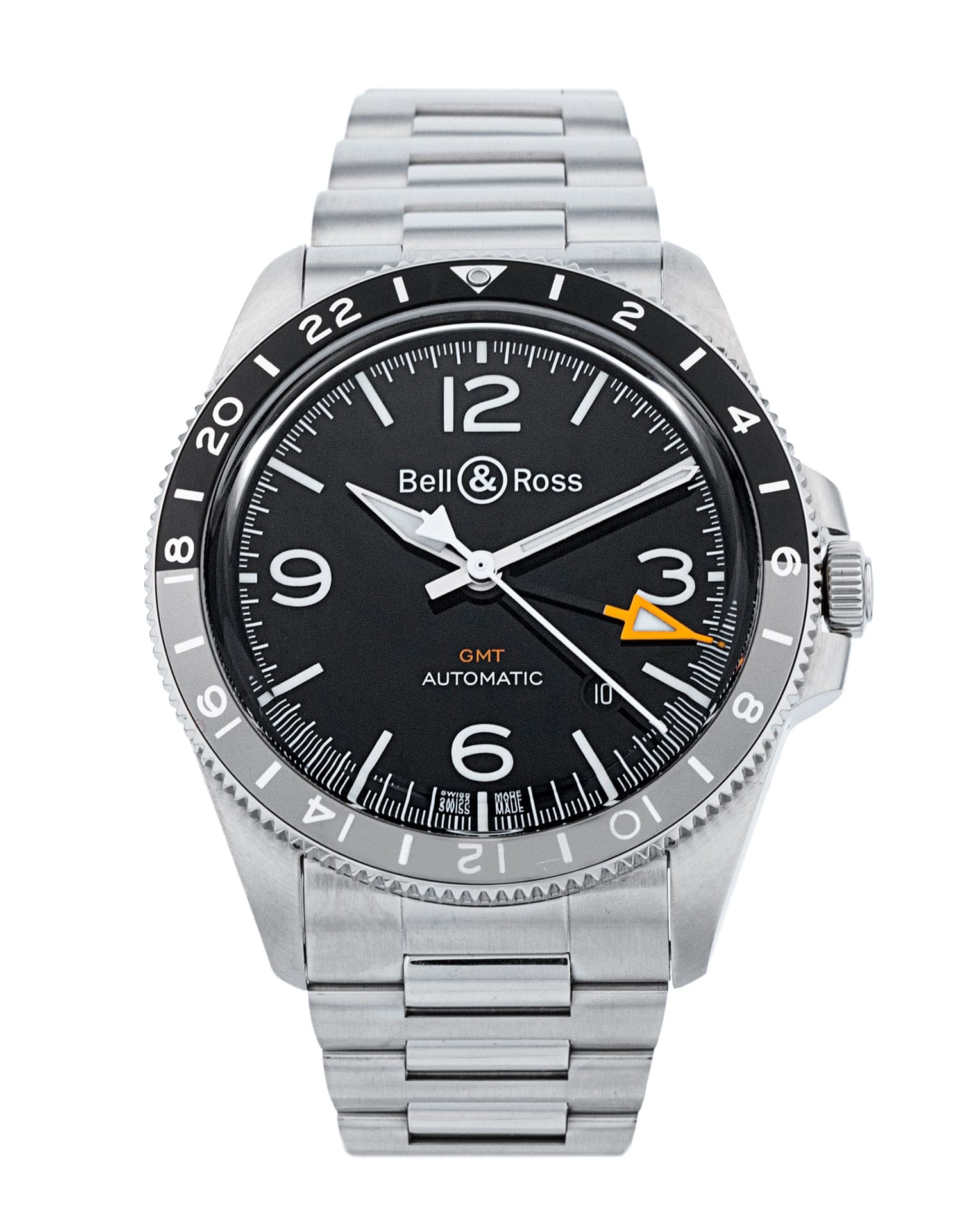 This Bell and Ross BR V2-93 BRV293-BL-ST/SST has a black quarter arabic dial and a bracelet strap. This Bell and Ross has undergone a thorough inspection of water resistance, accuracy, functionality and condition to determine the level of reconditioning required to meet our strict standards. It has also been referenced against technical documents and manufacturer records where available to ensure authenticity and a clean history. All our watches have a 24-month warranty for your peace of mind.