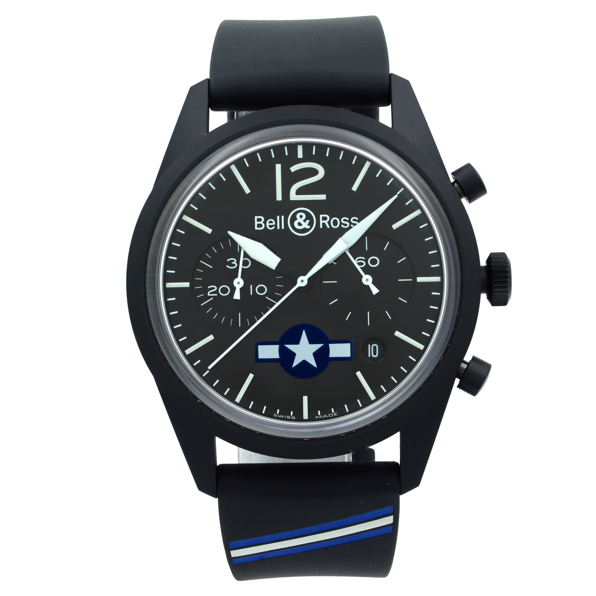 This Bell and Ross Vintage 126 BRV126-BL-CA-CO/US has a black dial and a rubber strap. This Bell and Ross has undergone a thorough inspection of water resistance, accuracy, functionality and condition to determine the level of reconditioning required to meet our strict standards. It has also been referenced against technical documents and manufacturer records where available to ensure authenticity and a clean history. All our watches have a 24-month warranty for your peace of mind.