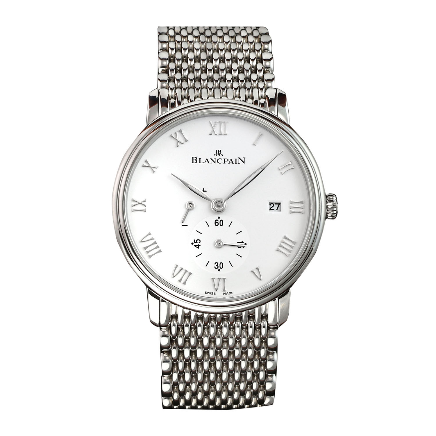This Blancpain Villeret 6606-1127-55B has a white roman numeral dial and a bracelet strap. This Blancpain has undergone a thorough inspection of water resistance, accuracy, functionality and condition to determine the level of reconditioning required to meet our strict standards. It has also been referenced against technical documents and manufacturer records where available to ensure authenticity and a clean history. Our watches have a 24-month warranty for your peace of mind, in conjunction with any remaining manufacturer’s warranty from new or from service.
