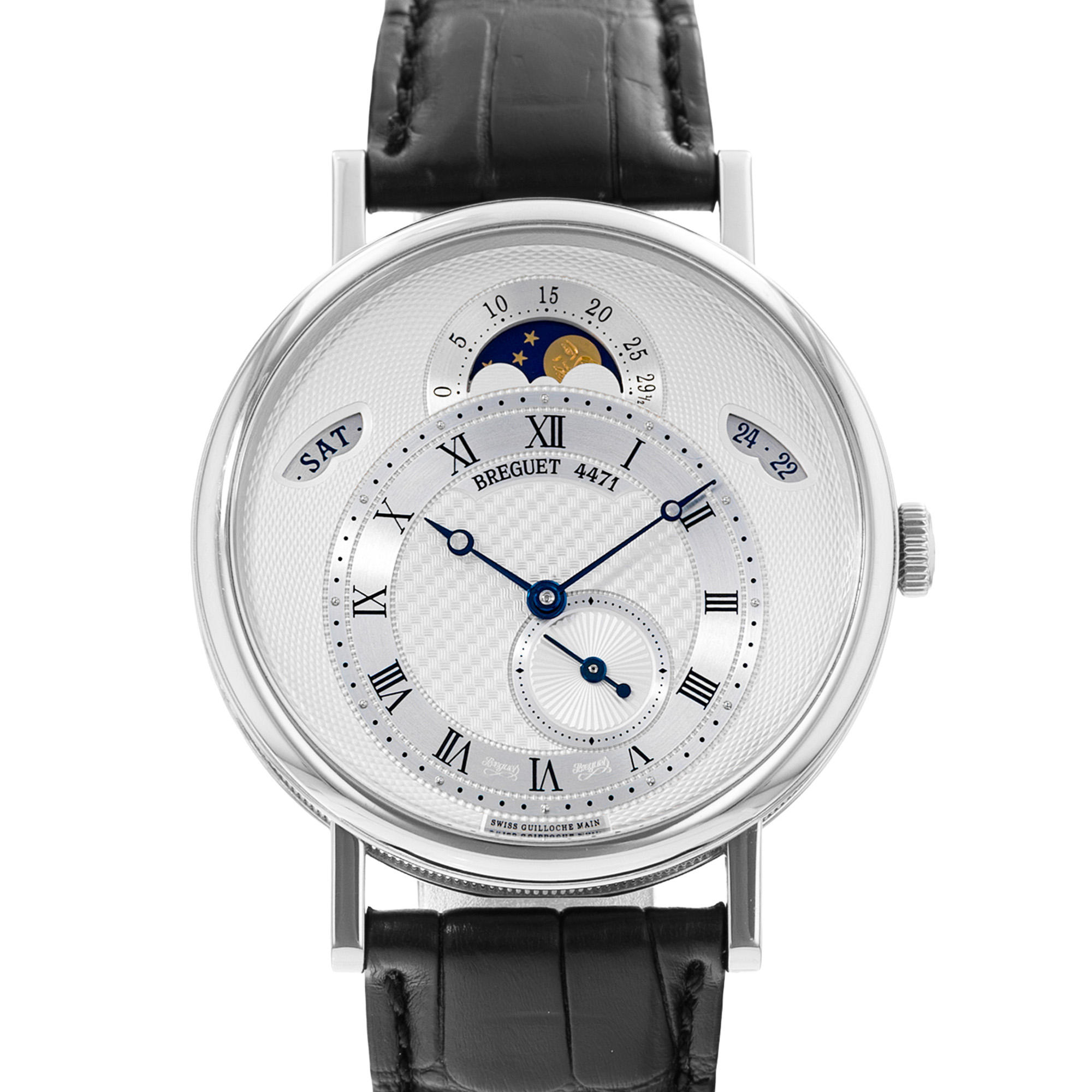 This Breguet Classique 7337BB/1E/9V6 has a silver roman numeral dial and a leather strap. This Breguet has undergone a thorough inspection of water resistance, accuracy, functionality and condition to determine the level of reconditioning required to meet our strict standards. It has also been referenced against technical documents and manufacturer records where available to ensure authenticity and a clean history. All our watches have a 24-month warranty for your peace of mind.