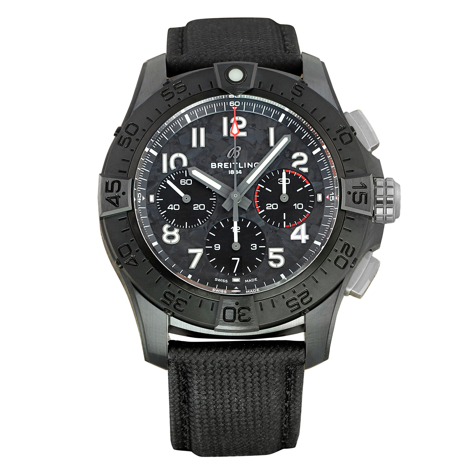 This Breitling Avenger B01 Chronograph 44mm Night Mission SB0147 has a black arabic dial and a fabric strap. This Breitling has undergone a thorough inspection of water resistance, accuracy, functionality and condition to determine the level of reconditioning required to meet our strict standards. It has also been referenced against technical documents and manufacturer records where available to ensure authenticity and a clean history. Our watches have a 24-month warranty for your peace of mind, in conjunction with any remaining manufacturer’s warranty from new or from service.