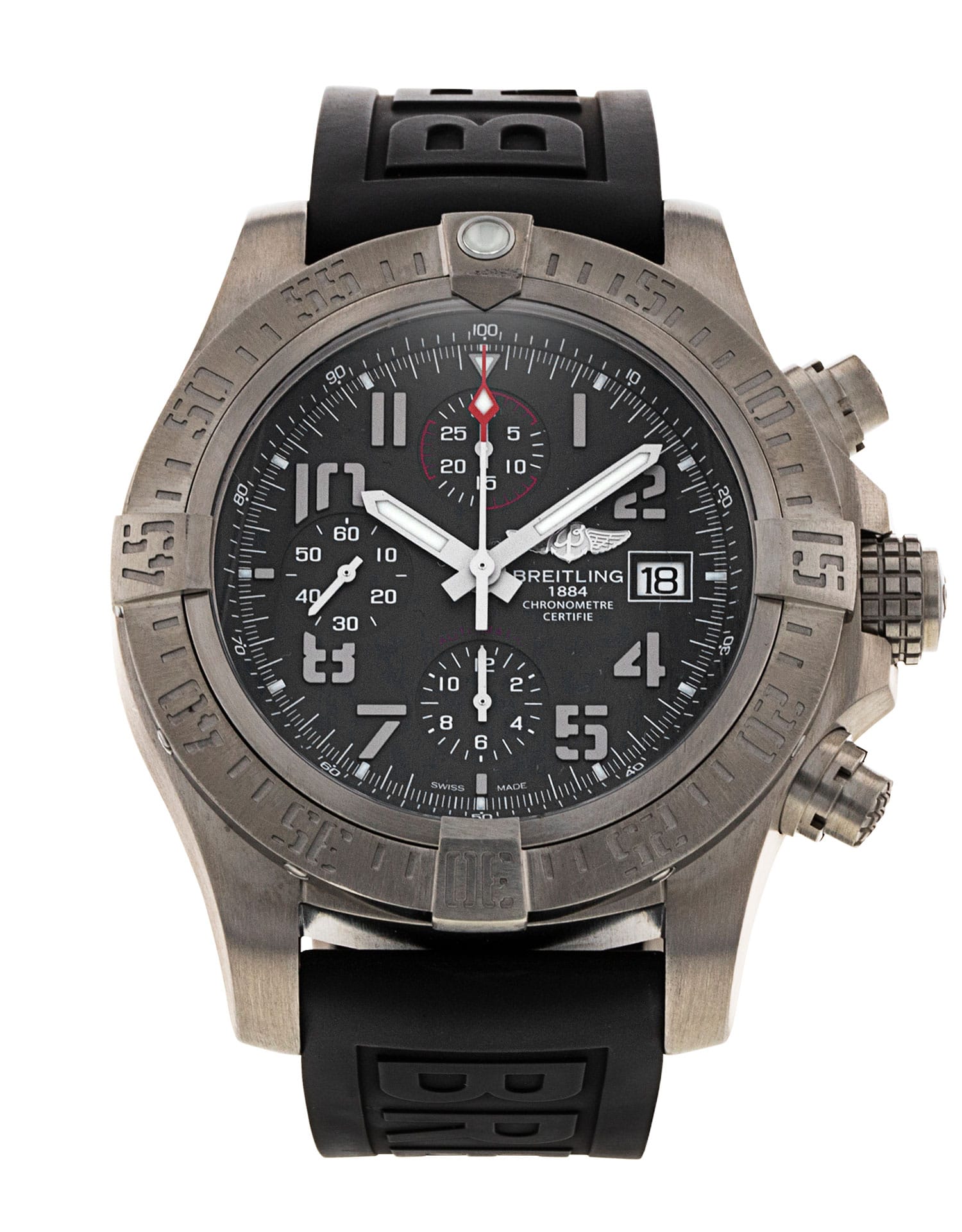 This Breitling Avenger Bandit E13383 has a grey arabic dial and a rubber strap. This Breitling has undergone a thorough inspection of water resistance, accuracy, functionality and condition to determine the level of reconditioning required to meet our strict standards. It has also been referenced against technical documents and manufacturer records where available to ensure authenticity and a clean history. All our watches have a 24-month warranty for your peace of mind.