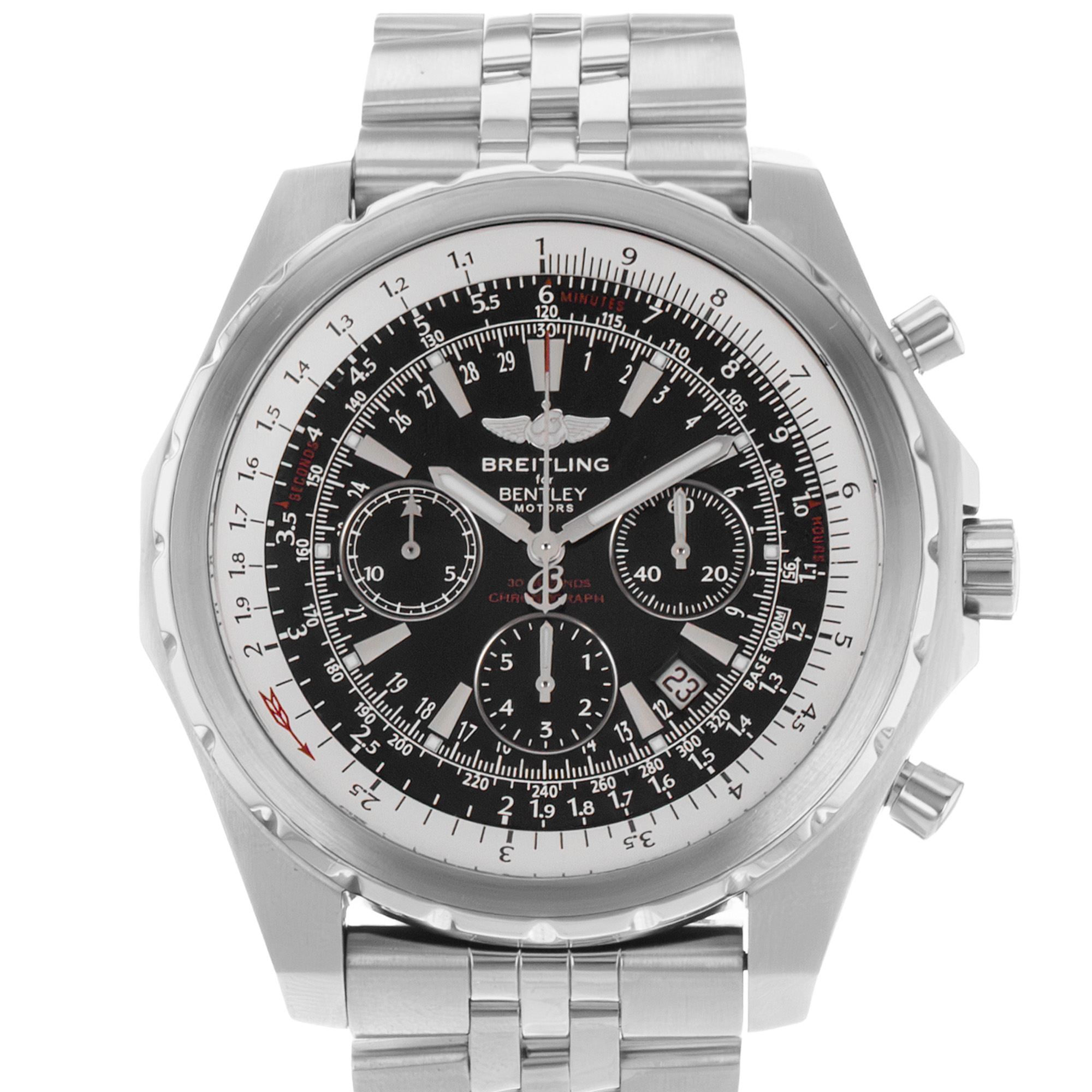 This Breitling Bentley Motors T A25363 has a black baton dial and a bracelet strap. This Breitling has undergone a thorough inspection of water resistance, accuracy, functionality and condition to determine the level of reconditioning required to meet our strict standards. It has also been referenced against technical documents and manufacturer records where available to ensure authenticity and a clean history. All our watches have a 24-month warranty for your peace of mind.
