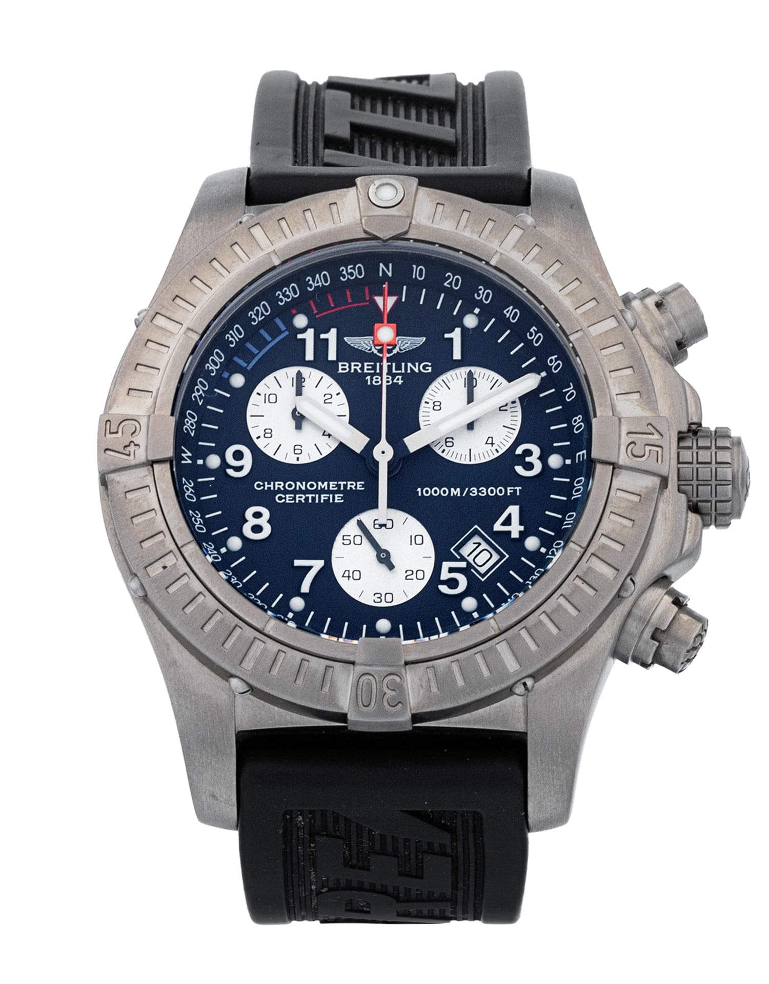 This Breitling Chrono Avenger M1 E73360 has a blue arabic dial and a rubber strap. This Breitling has undergone a thorough inspection of water resistance, accuracy, functionality and condition to determine the level of reconditioning required to meet our strict standards. It has also been referenced against technical documents and manufacturer records where available to ensure authenticity and a clean history. All our watches have a 24-month warranty for your peace of mind.