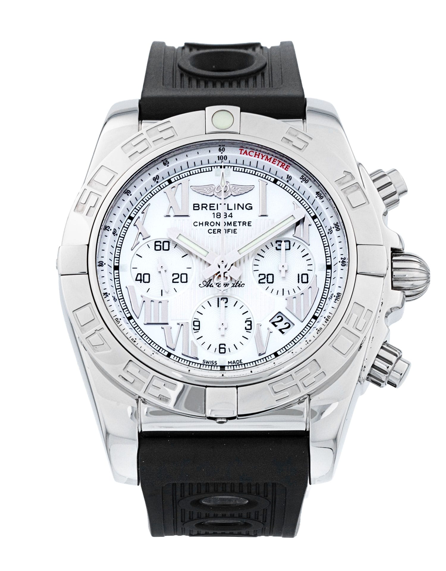 This Breitling Chronomat 44 AB0110 has a mother of pearl white roman numeral dial and a rubber strap. This Breitling has undergone a thorough inspection of water resistance, accuracy, functionality and condition to determine the level of reconditioning required to meet our strict standards. It has also been referenced against technical documents and manufacturer records where available to ensure authenticity and a clean history. All our watches have a 24-month warranty for your peace of mind.