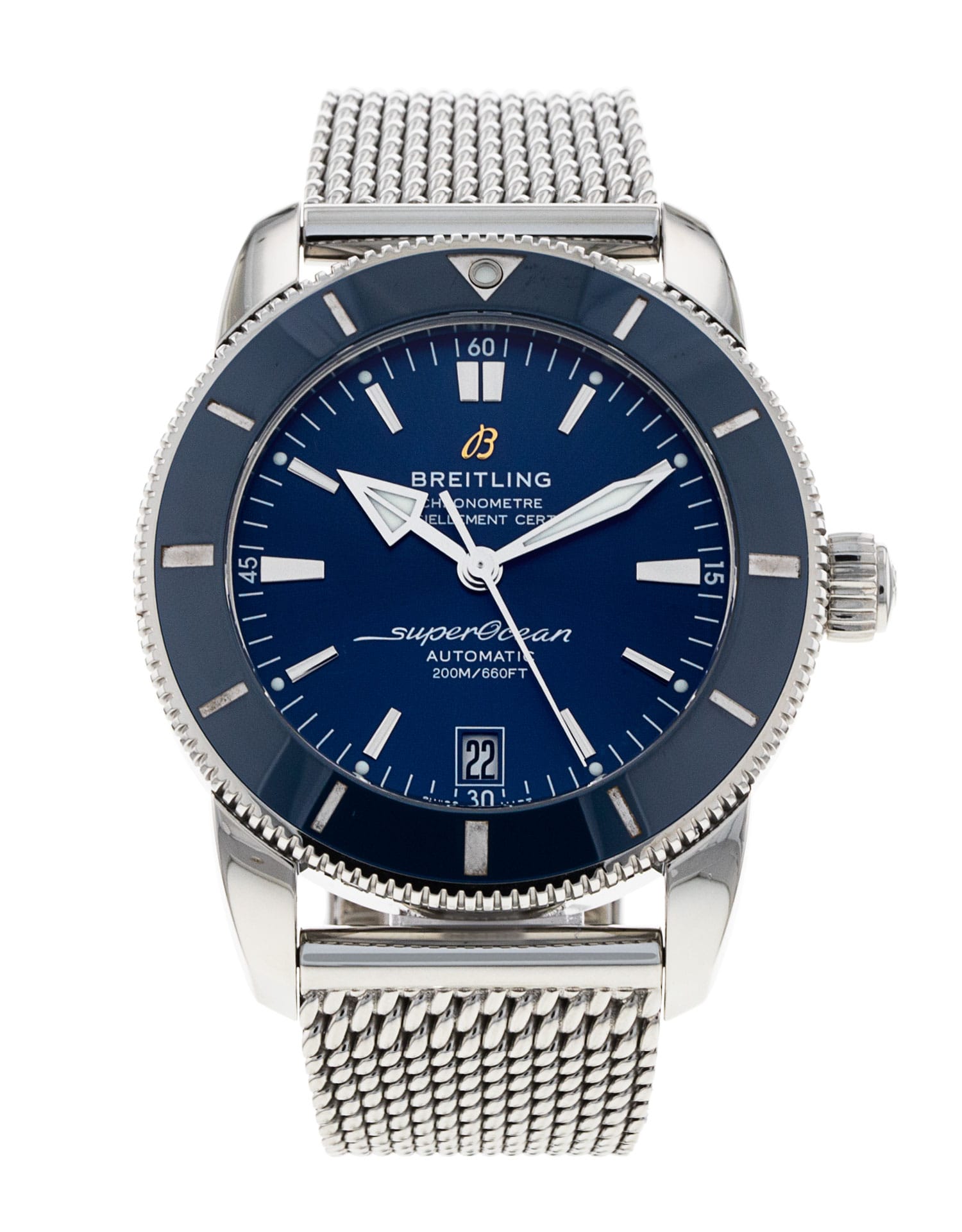 This Breitling SuperOcean Heritage B20 Automatic 42 AB2010 has a blue baton dial and a bracelet strap. This Breitling has undergone a thorough inspection of water resistance, accuracy, functionality and condition to determine the level of reconditioning required to meet our strict standards. It has also been referenced against technical documents and manufacturer records where available to ensure authenticity and a clean history. All our watches have a 24-month warranty for your peace of mind.