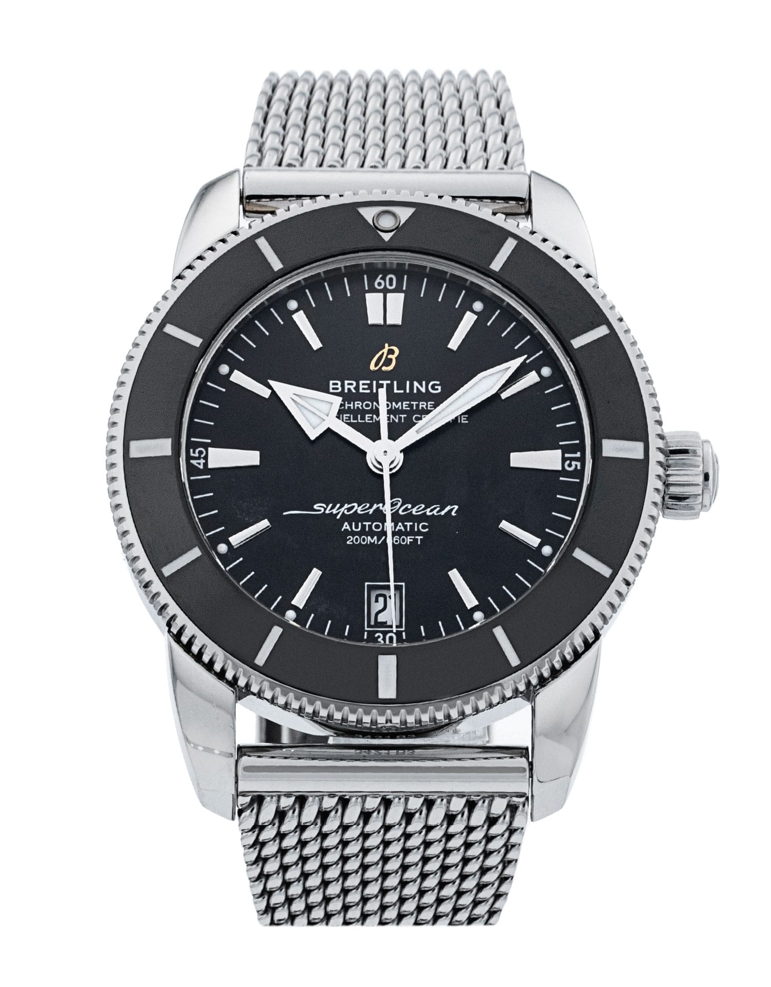 This Breitling SuperOcean Heritage B20 Automatic 42 AB2010 has a black baton dial and a bracelet strap. This Breitling has undergone a thorough inspection of water resistance, accuracy, functionality and condition to determine the level of reconditioning required to meet our strict standards. It has also been referenced against technical documents and manufacturer records where available to ensure authenticity and a clean history. All our watches have a 24-month warranty for your peace of mind.