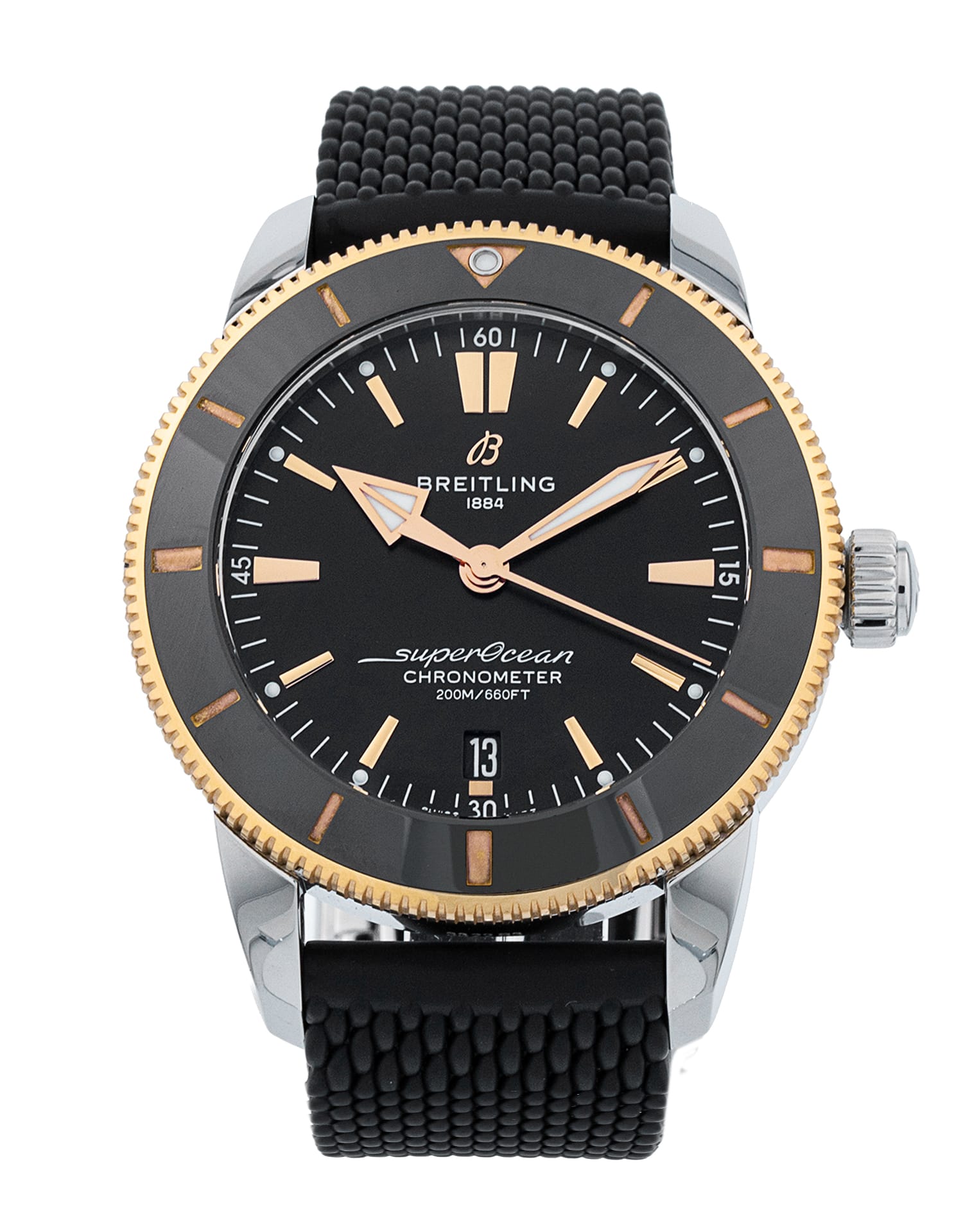This Breitling SuperOcean Heritage II 44 UB2030 has a black baton dial and a rubber strap. This Breitling has undergone a thorough inspection of water resistance, accuracy, functionality and condition to determine the level of reconditioning required to meet our strict standards. It has also been referenced against technical documents and manufacturer records where available to ensure authenticity and a clean history. Our watches have a 24-month warranty for your peace of mind, in conjunction with any remaining manufacturer’s warranty from new or from service.