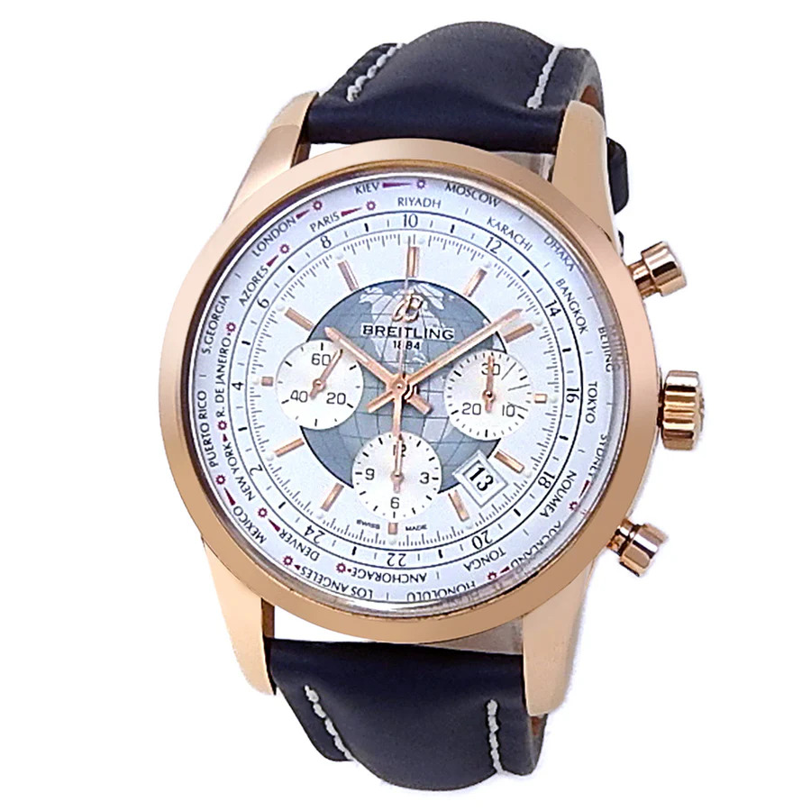 This Breitling Transocean Chronograph RB0510 has a white dial and a leather strap. This Breitling has undergone a thorough inspection of water resistance, accuracy, functionality and condition to determine the level of reconditioning required to meet our strict standards. It has also been referenced against technical documents and manufacturer records where available to ensure authenticity and a clean history. All our watches have a 24-month warranty for your peace of mind.