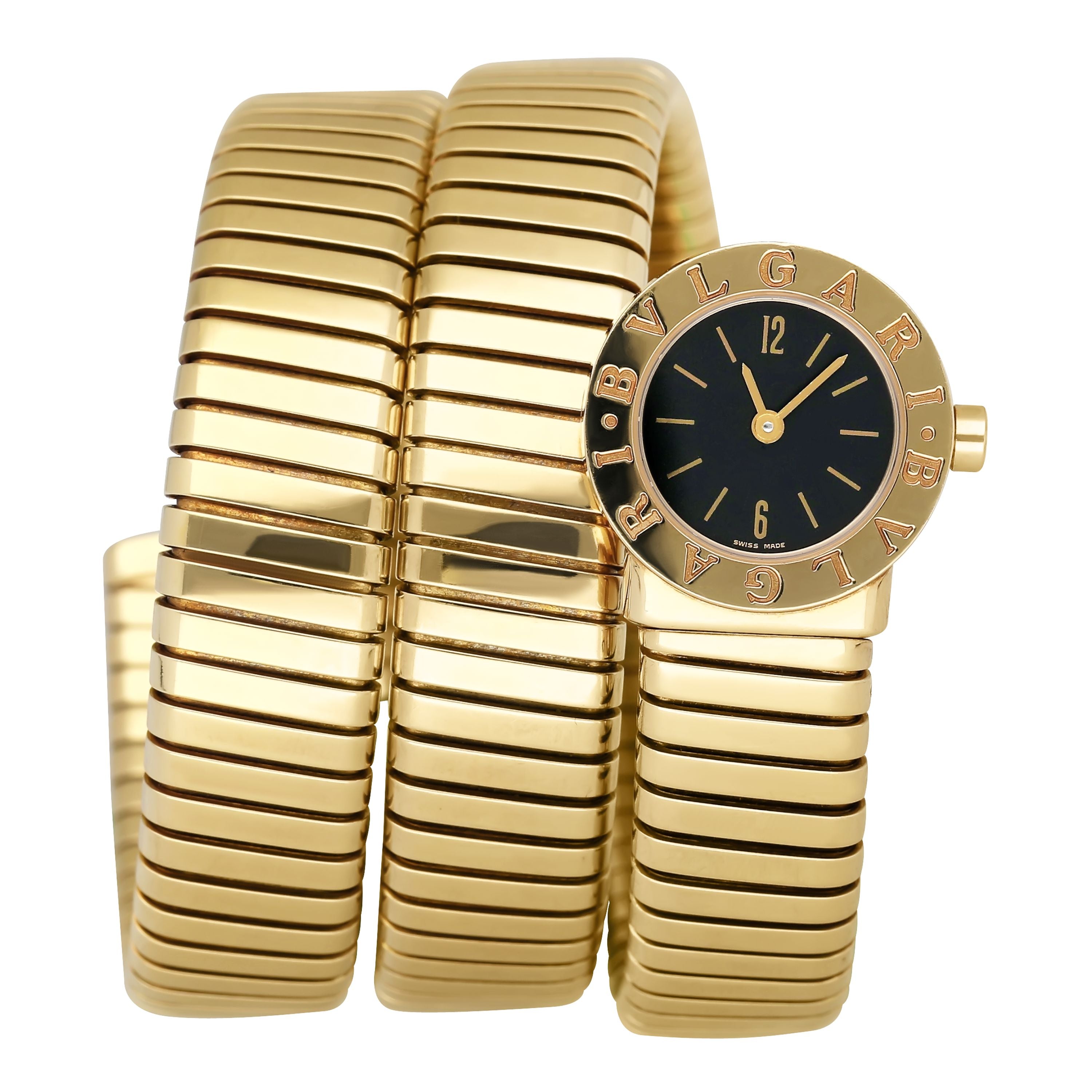 This Bvlgari BB Tubogas BB191T has a black dial and a bracelet strap. This Bvlgari has undergone a thorough inspection of water resistance, accuracy, functionality and condition to determine the level of reconditioning required to meet our strict standards. It has also been referenced against technical documents and manufacturer records where available to ensure authenticity and a clean history. All our watches have a 24-month warranty for your peace of mind.