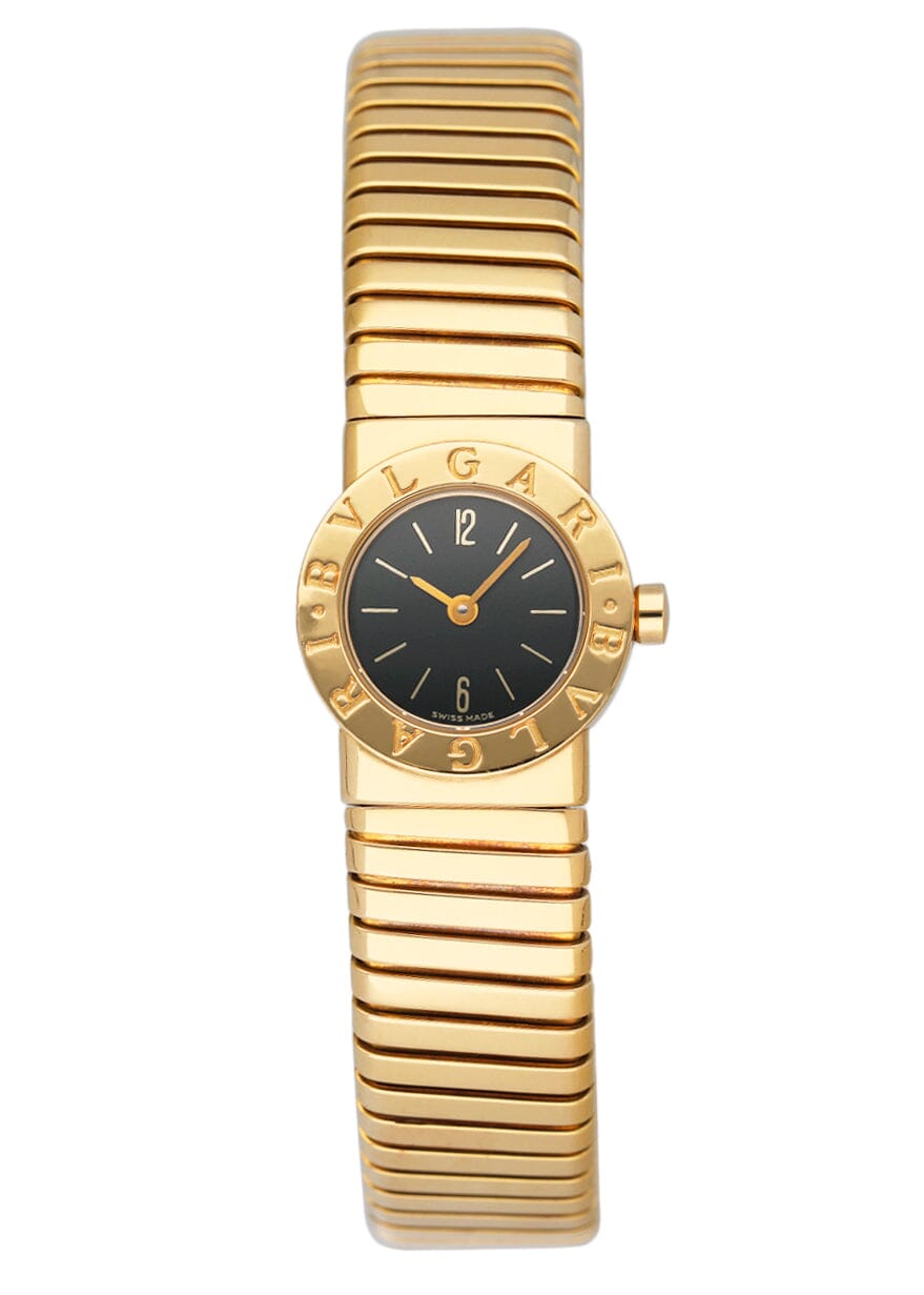 This Bvlgari BB Tubogas BB 19 2T has a black baton dial and a bracelet strap. This Bvlgari has undergone a thorough inspection of water resistance, accuracy, functionality and condition to determine the level of reconditioning required to meet our strict standards. It has also been referenced against technical documents and manufacturer records where available to ensure authenticity and a clean history. All our watches have a 24-month warranty for your peace of mind.
