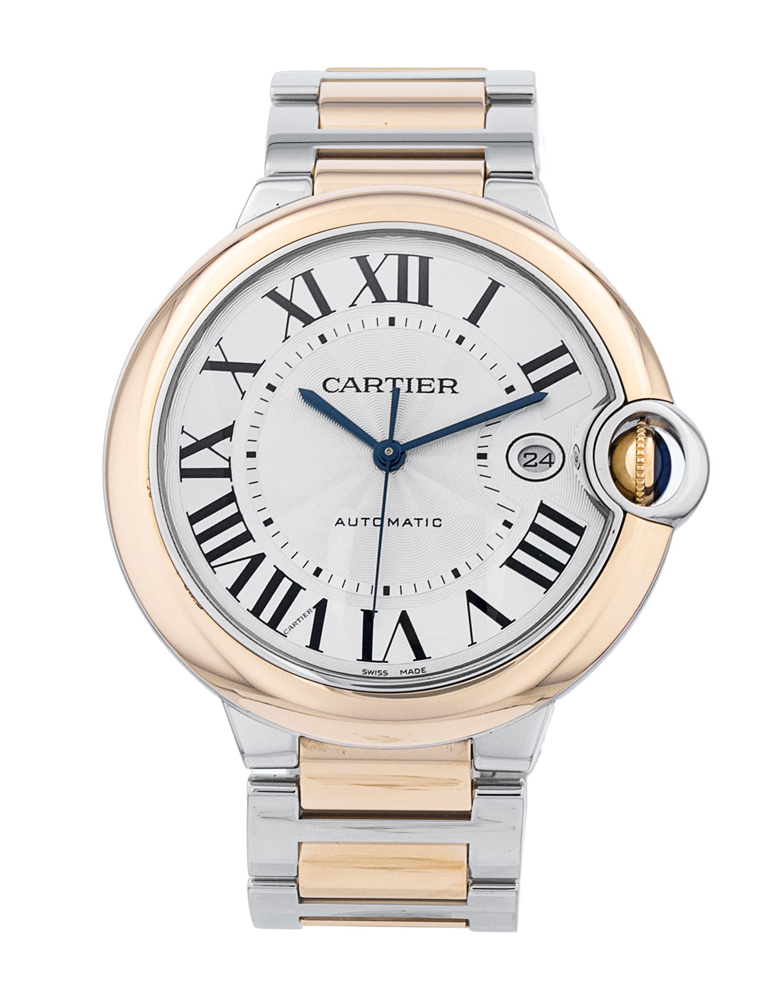 This Cartier Ballon Bleu W2BB0004 has a silver roman numeral dial and a bracelet strap. This Cartier has undergone a thorough inspection of accuracy, functionality and condition at our Cartier certified service centre to determine the level of reconditioning required to meet our strict standards. It has also been checked against our records to ensure authenticity. Our watches have a 24-month warranty for your peace of mind, in conjunction with any remaining manufacturer’s warranty from new or from service.