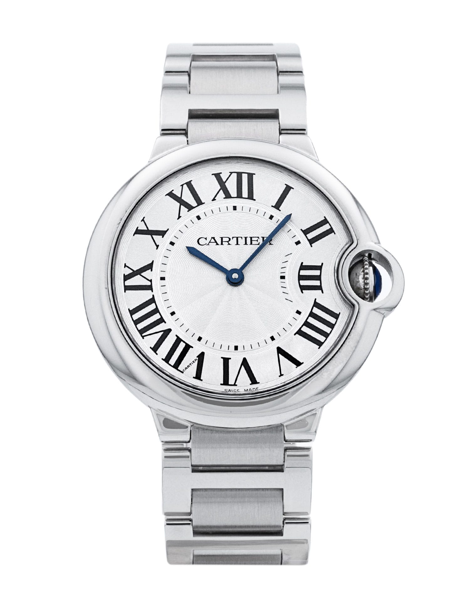 This Cartier Ballon Bleu W69011Z4 has a silver roman numeral dial and a bracelet strap. This Cartier has undergone a thorough inspection of accuracy, functionality and condition at our Cartier certified service centre to determine the level of reconditioning required to meet our strict standards. It has also been checked against our records to ensure authenticity. All our watches have a 24-month warranty for your peace of mind.