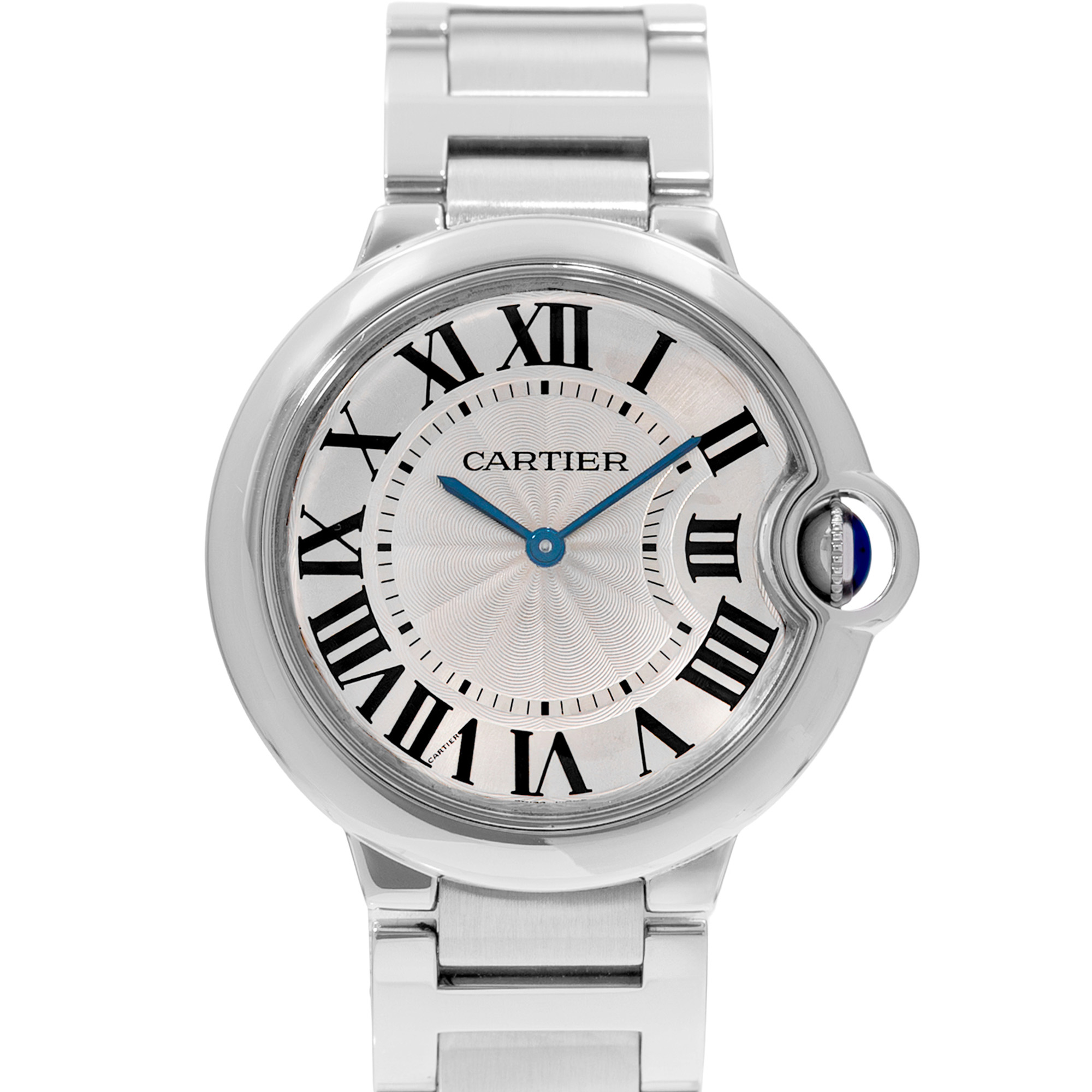 This Cartier Ballon Bleu W69011Z4 has a silver roman numeral dial and a bracelet strap. This Cartier has undergone a thorough inspection of accuracy, functionality and condition at our Cartier certified service centre to determine the level of reconditioning required to meet our strict standards. It has also been checked against our records to ensure authenticity. All our watches have a 24-month warranty for your peace of mind.