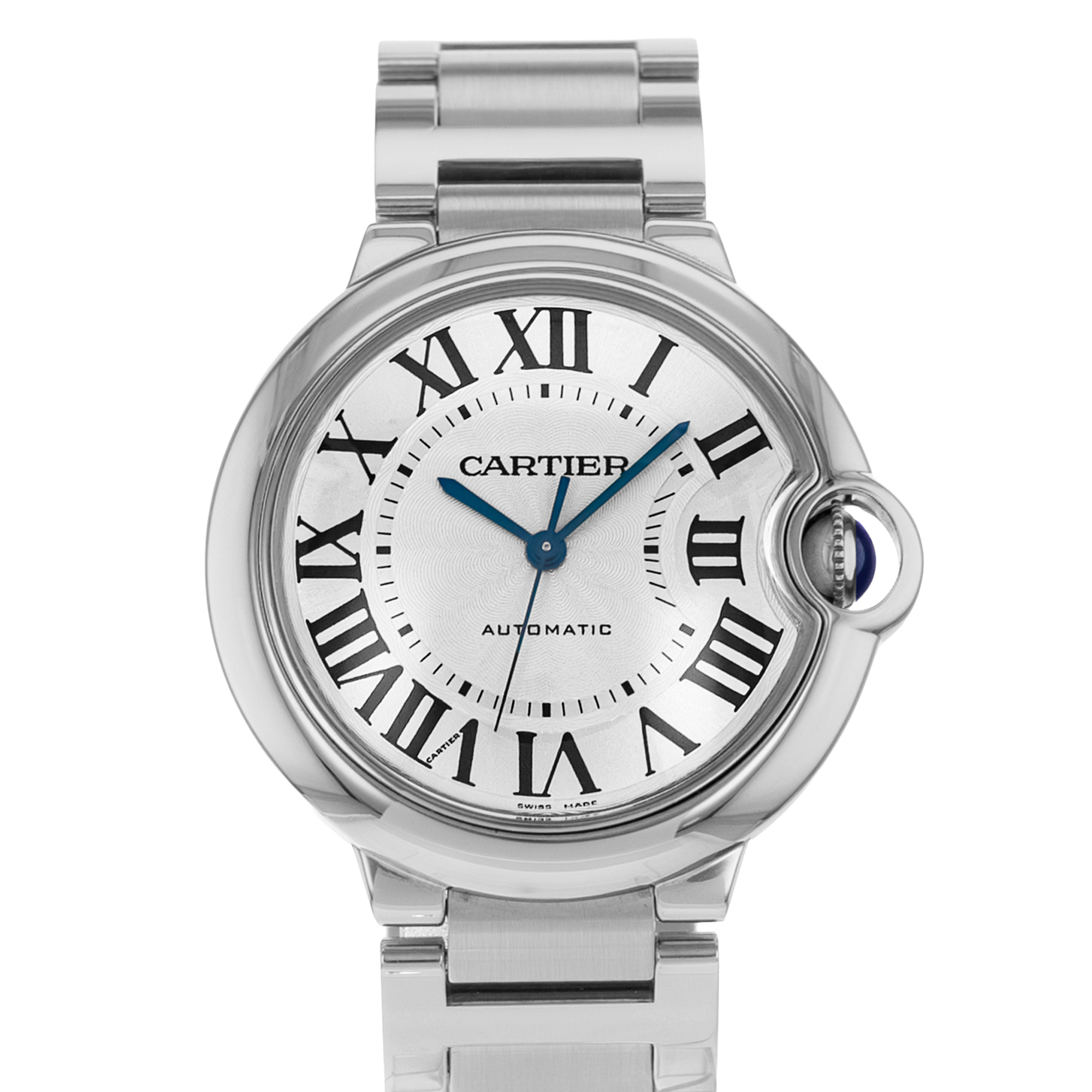 This Cartier Ballon Bleu W6920046 has a silver roman numeral dial and a bracelet strap. This Cartier has undergone a thorough inspection of accuracy, functionality and condition at our Cartier certified service centre to determine the level of reconditioning required to meet our strict standards. It has also been checked against our records to ensure authenticity. All our watches have a 24-month warranty for your peace of mind.