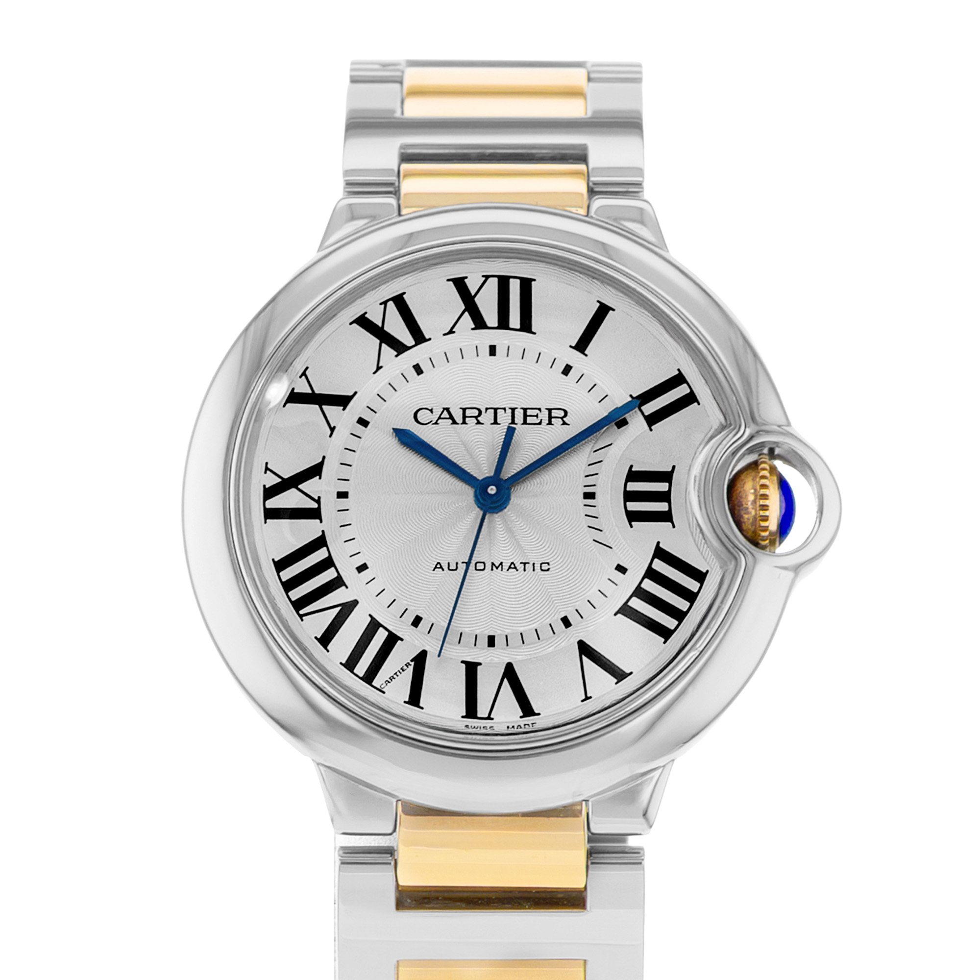 This Cartier Ballon Bleu W6920047 has a silver roman numeral dial and a bracelet strap. This Cartier has undergone a thorough inspection of accuracy, functionality and condition at our Cartier certified service centre to determine the level of reconditioning required to meet our strict standards. It has also been checked against our records to ensure authenticity. All our watches have a 24-month warranty for your peace of mind.