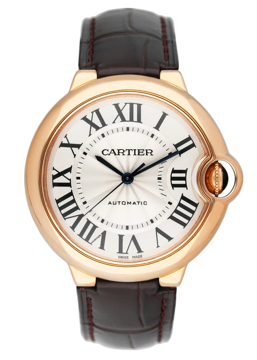This Cartier Ballon Bleu WGBB0009 has a silver roman numeral dial and a leather strap. This Cartier has undergone a thorough inspection of accuracy, functionality and condition at our Cartier certified service centre to determine the level of reconditioning required to meet our strict standards. It has also been checked against our records to ensure authenticity. All our watches have a 24-month warranty for your peace of mind.
