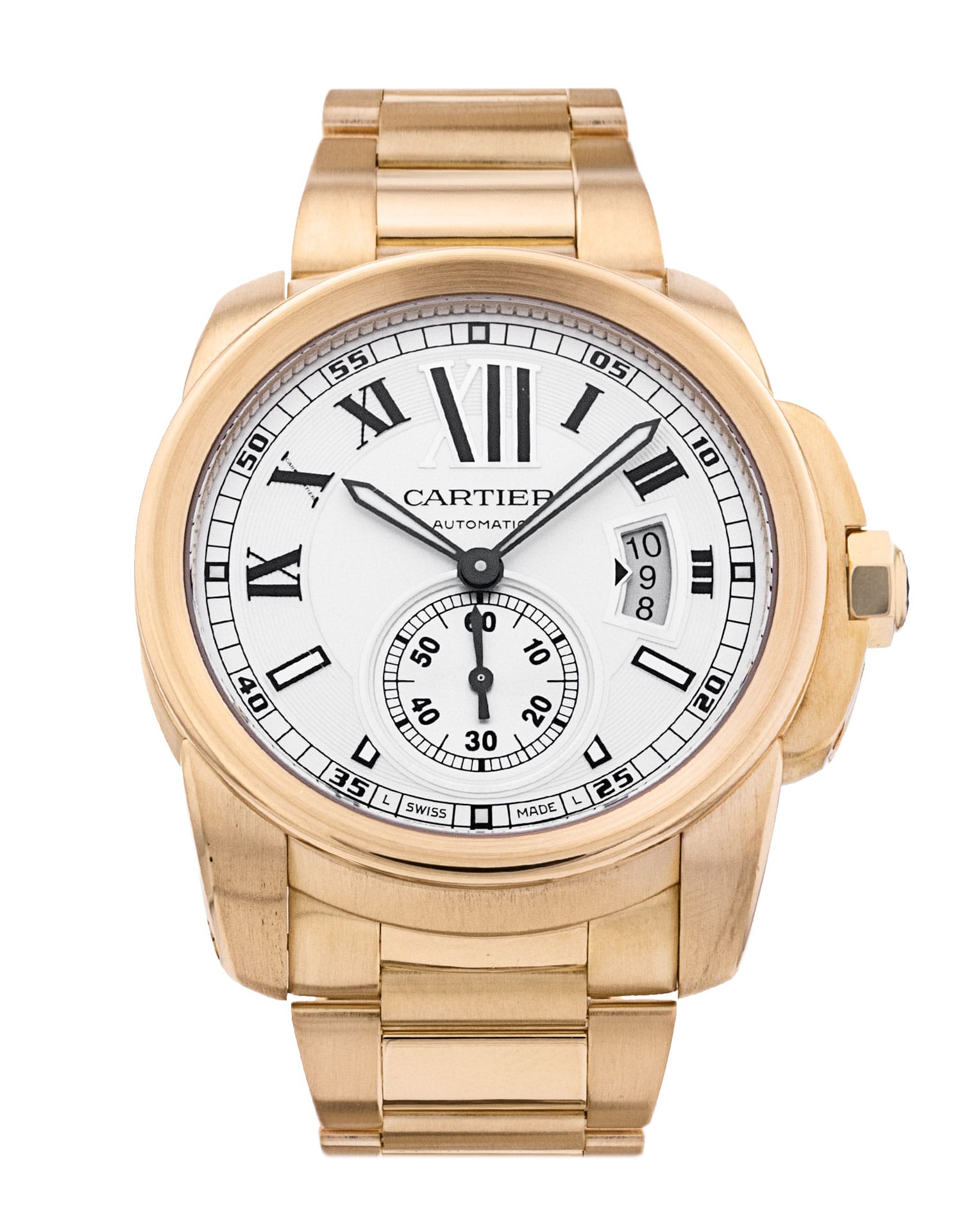 This Cartier Calibre De Cartier W7100018 has a silver roman numeral dial and a bracelet strap. This Cartier has undergone a thorough inspection of accuracy, functionality and condition at our Cartier certified service centre to determine the level of reconditioning required to meet our strict standards. It has also been checked against our records to ensure authenticity. All our watches have a 24-month warranty for your peace of mind.