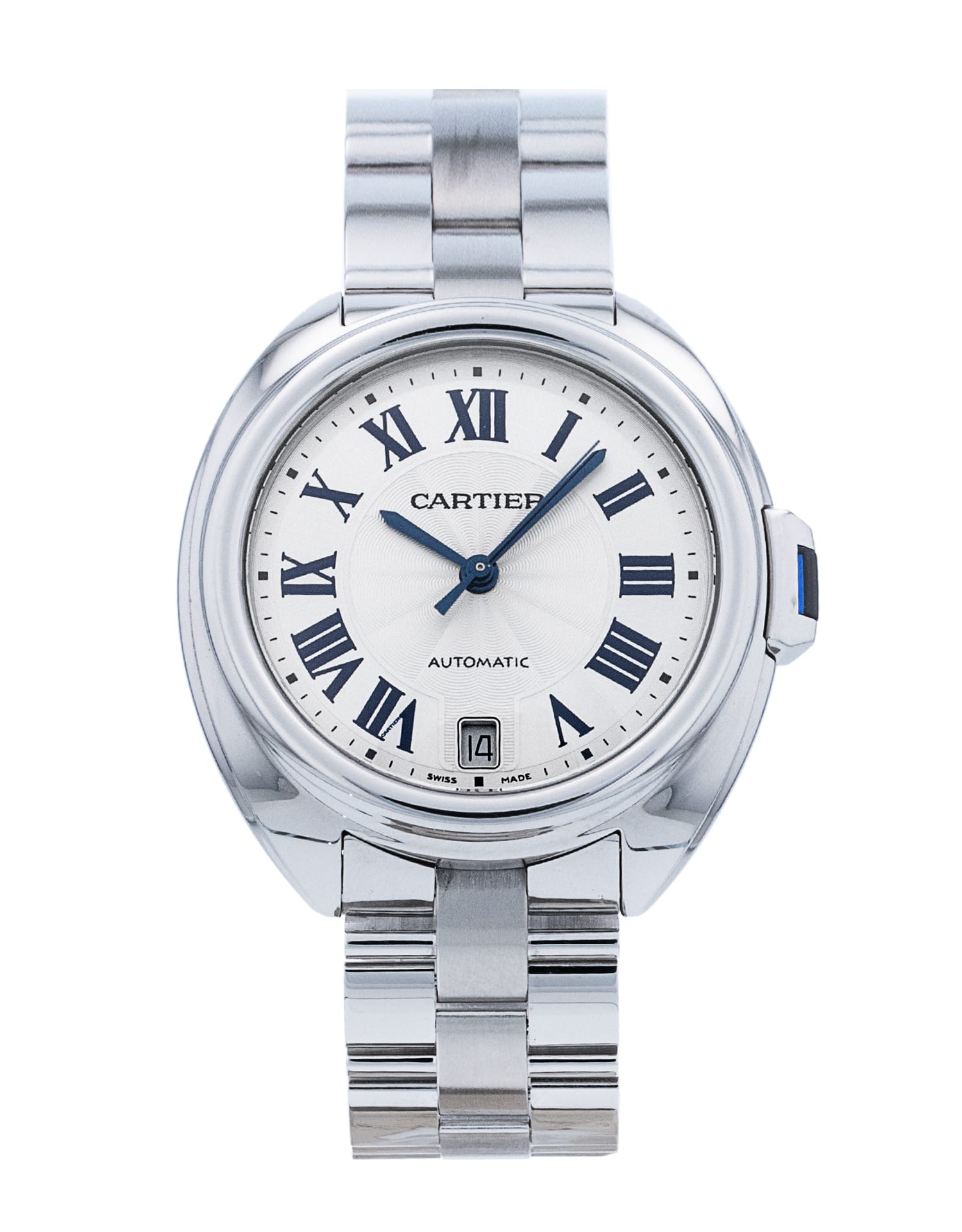 This Cartier Cle De Cartier WSCL0006 has a silver roman numeral dial and a bracelet strap. This Cartier has undergone a thorough inspection of accuracy, functionality and condition at our Cartier certified service centre to determine the level of reconditioning required to meet our strict standards. It has also been checked against our records to ensure authenticity. All our watches have a 24-month warranty for your peace of mind.