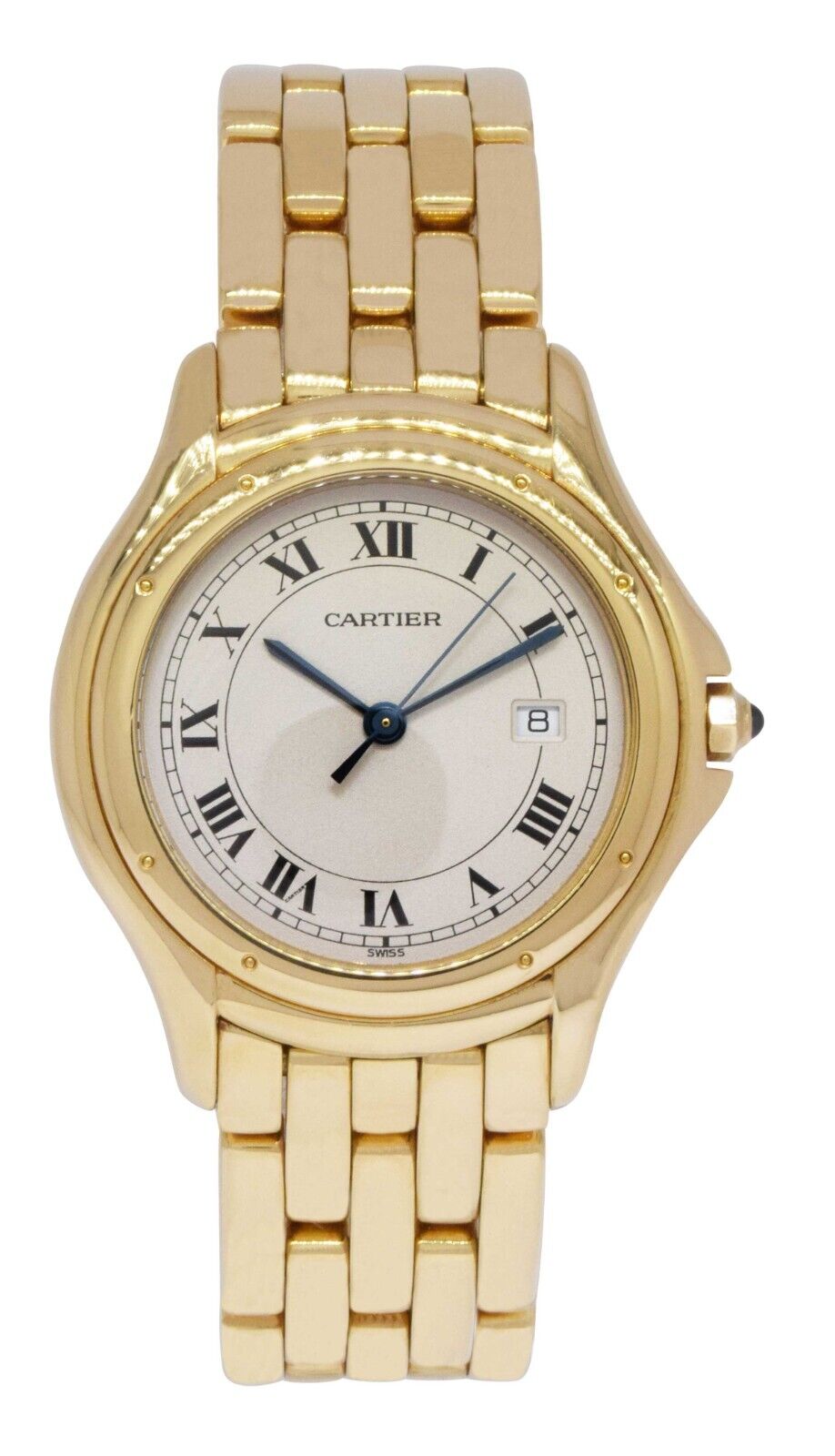 This Cartier Cougar W25013B9 has a ivory roman numeral dial and a bracelet strap. This Cartier has undergone a thorough inspection of accuracy, functionality and condition at our Cartier certified service centre to determine the level of reconditioning required to meet our strict standards. It has also been checked against our records to ensure authenticity. All our watches have a 24-month warranty for your peace of mind.