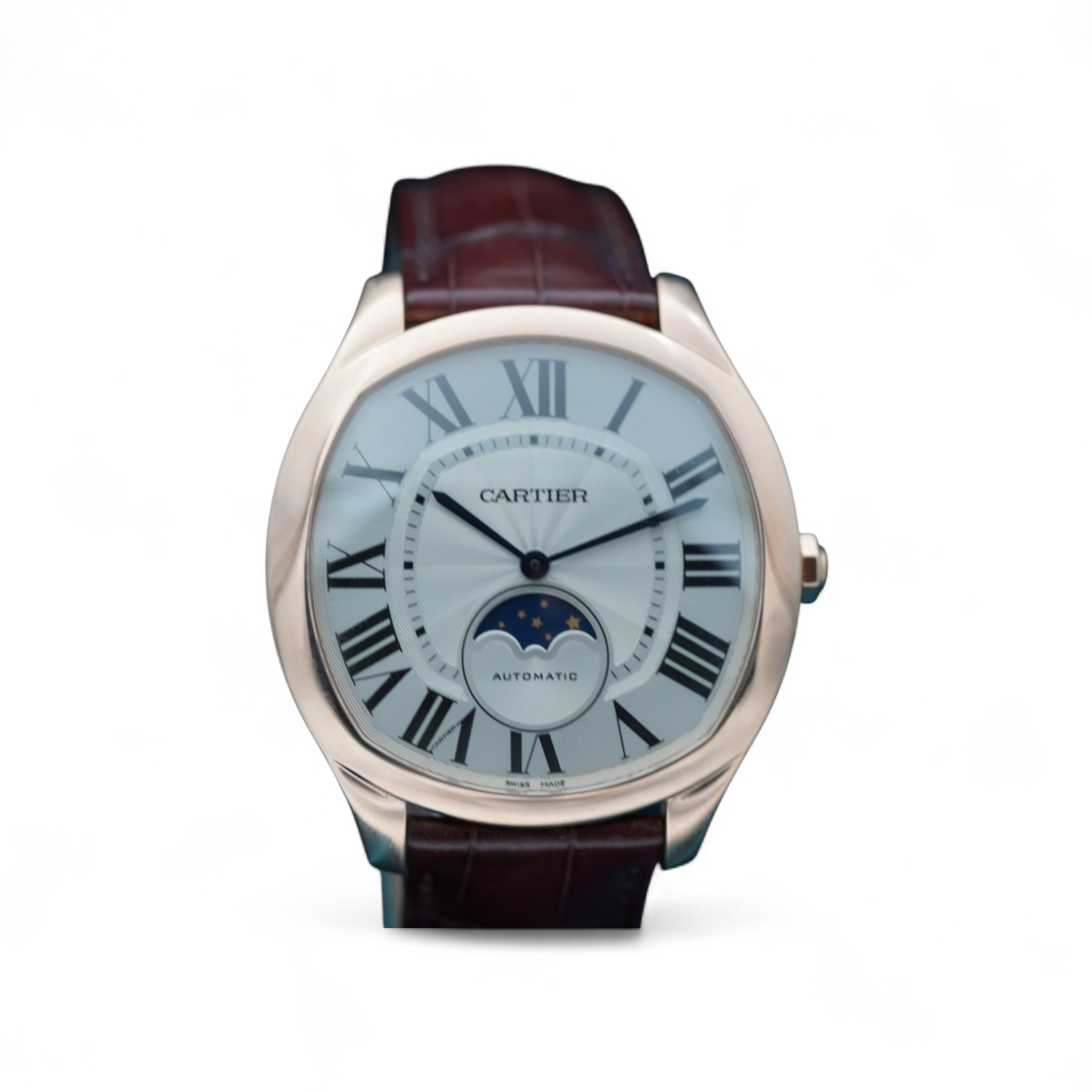 This Cartier Drive De Cartier WGNM0008 has a silver roman numeral dial and a leather strap. This Cartier has undergone a thorough inspection of accuracy, functionality and condition at our Cartier certified service centre to determine the level of reconditioning required to meet our strict standards. It has also been checked against our records to ensure authenticity. All our watches have a 24-month warranty for your peace of mind.