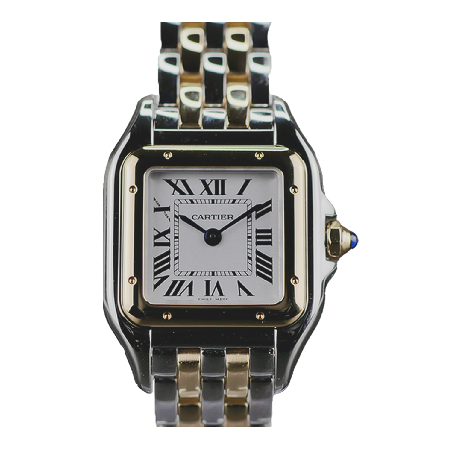 This Cartier Panthere De Cartier W2PN0018 has a silver roman numeral dial and a bracelet strap. This Cartier has undergone a thorough inspection of accuracy, functionality and condition at our Cartier certified service centre to determine the level of reconditioning required to meet our strict standards. It has also been checked against our records to ensure authenticity. Our watches have a 24-month warranty for your peace of mind, in conjunction with any remaining manufacturer’s warranty from new or from service.