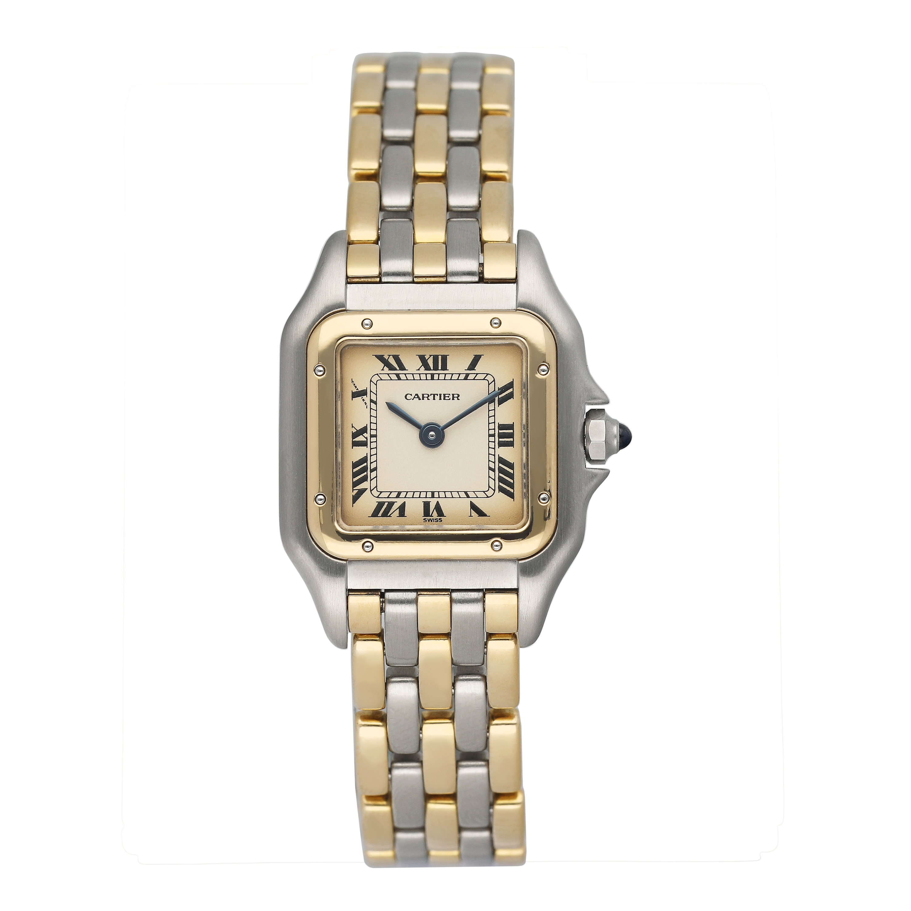 This Cartier Panthere 166921 has a silver roman numeral dial and a bracelet strap. This Cartier has undergone a thorough inspection of accuracy, functionality and condition at our Cartier certified service centre to determine the level of reconditioning required to meet our strict standards. It has also been checked against our records to ensure authenticity. All our watches have a 24-month warranty for your peace of mind.