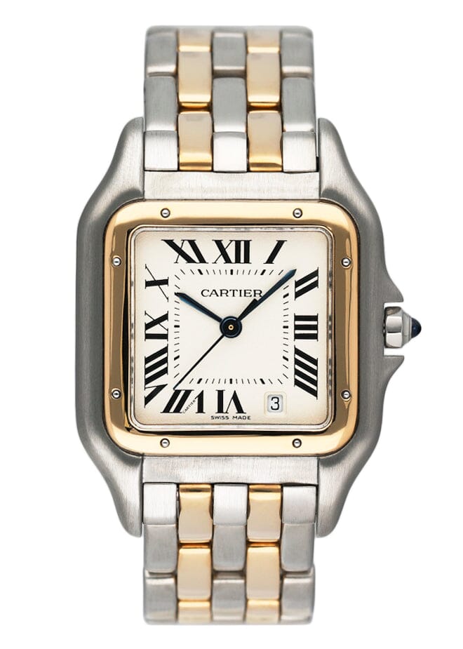 This Cartier Panthere 83083242 has a silver roman numeral dial and a bracelet strap. This Cartier has undergone a thorough inspection of accuracy, functionality and condition at our Cartier certified service centre to determine the level of reconditioning required to meet our strict standards. It has also been checked against our records to ensure authenticity. All our watches have a 24-month warranty for your peace of mind.
