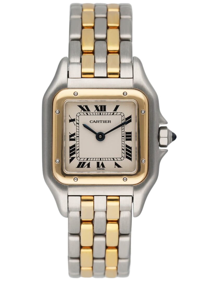 This Cartier Panthere 84083242 has a silver roman numeral dial and a bracelet strap. This Cartier has undergone a thorough inspection of accuracy, functionality and condition at our Cartier certified service centre to determine the level of reconditioning required to meet our strict standards. It has also been checked against our records to ensure authenticity. All our watches have a 24-month warranty for your peace of mind.