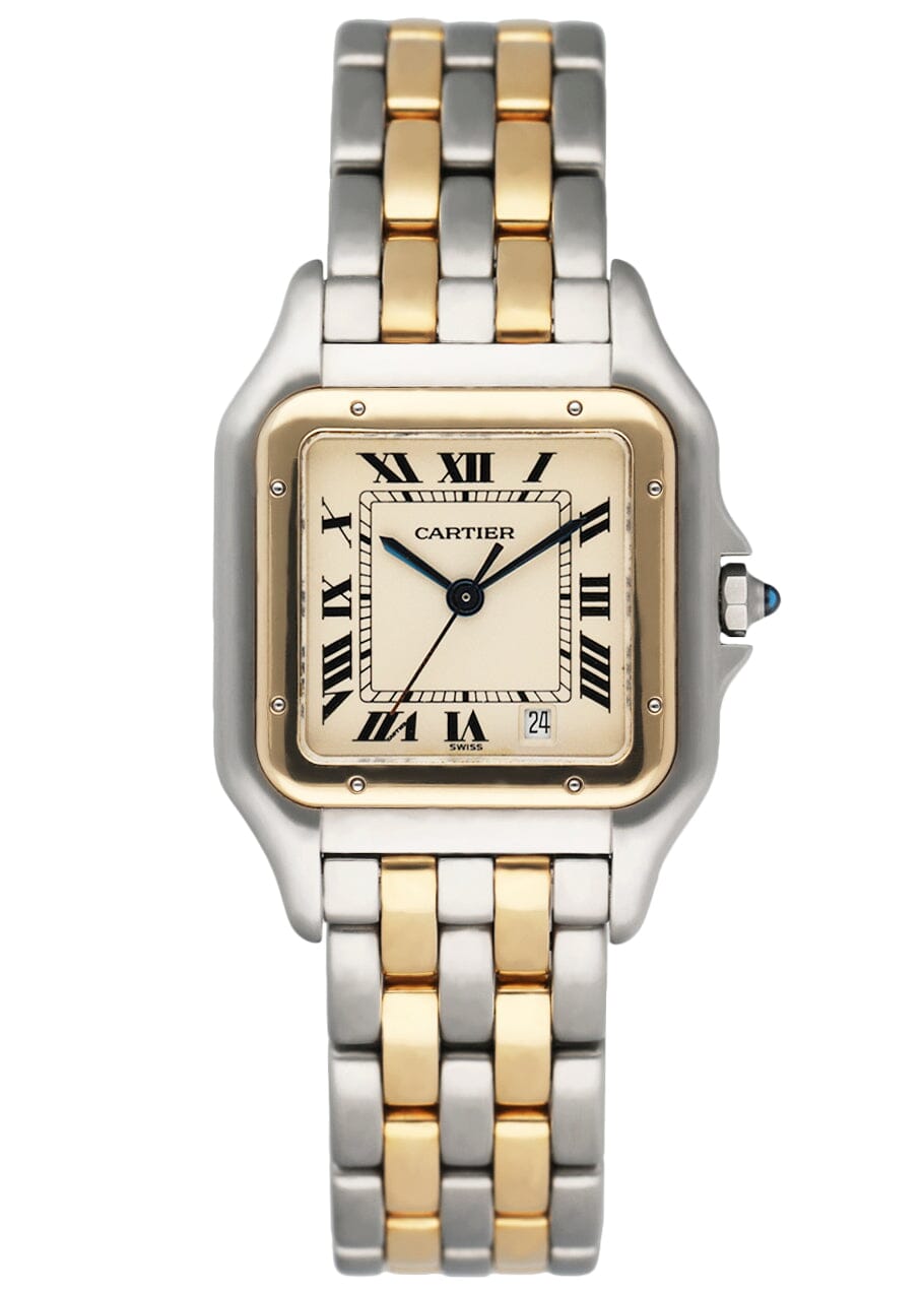 This Cartier Panthere W25028B6 has a silver roman numeral dial and a bracelet strap. This Cartier has undergone a thorough inspection of accuracy, functionality and condition at our Cartier certified service centre to determine the level of reconditioning required to meet our strict standards. It has also been checked against our records to ensure authenticity. All our watches have a 24-month warranty for your peace of mind.