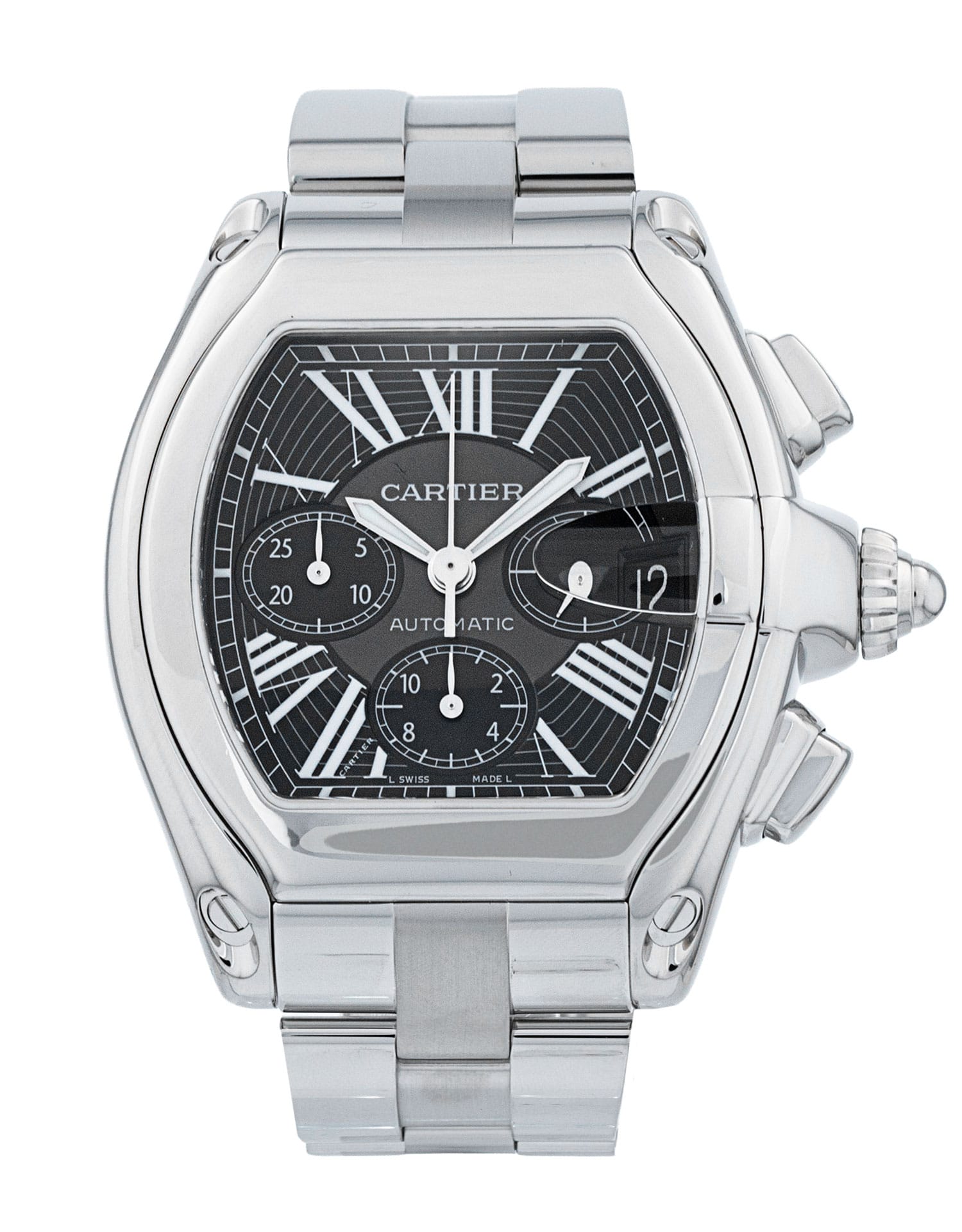 This Cartier Roadster W62020X6 has a black roman numeral dial and a bracelet strap. This Cartier has undergone a thorough inspection of accuracy, functionality and condition at our Cartier certified service centre to determine the level of reconditioning required to meet our strict standards. It has also been checked against our records to ensure authenticity. All our watches have a 24-month warranty for your peace of mind.