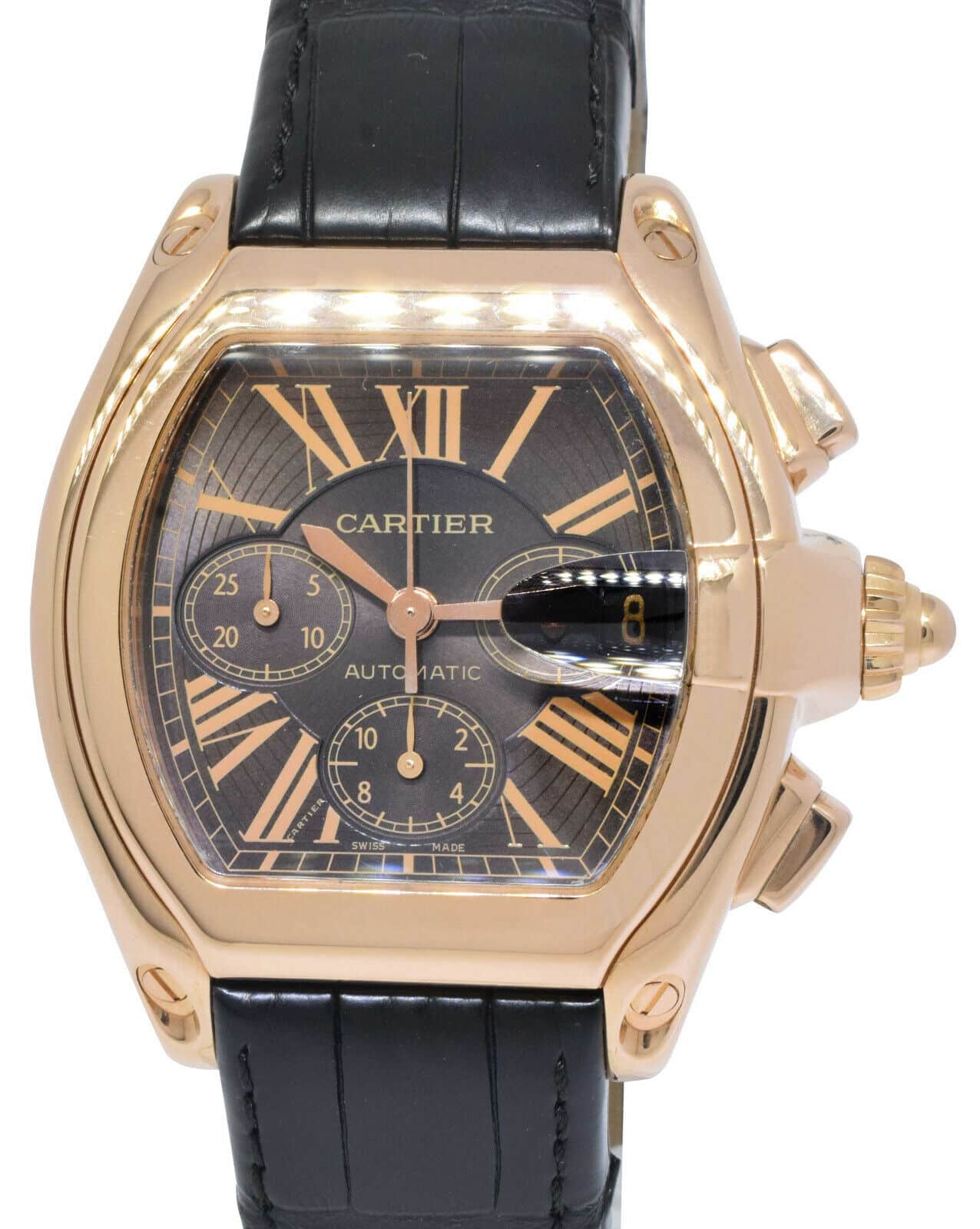 This Cartier Roadster W62042Y5 has a brown roman numeral dial and a leather strap. This Cartier has undergone a thorough inspection of accuracy, functionality and condition at our Cartier certified service centre to determine the level of reconditioning required to meet our strict standards. It has also been checked against our records to ensure authenticity. All our watches have a 24-month warranty for your peace of mind.
