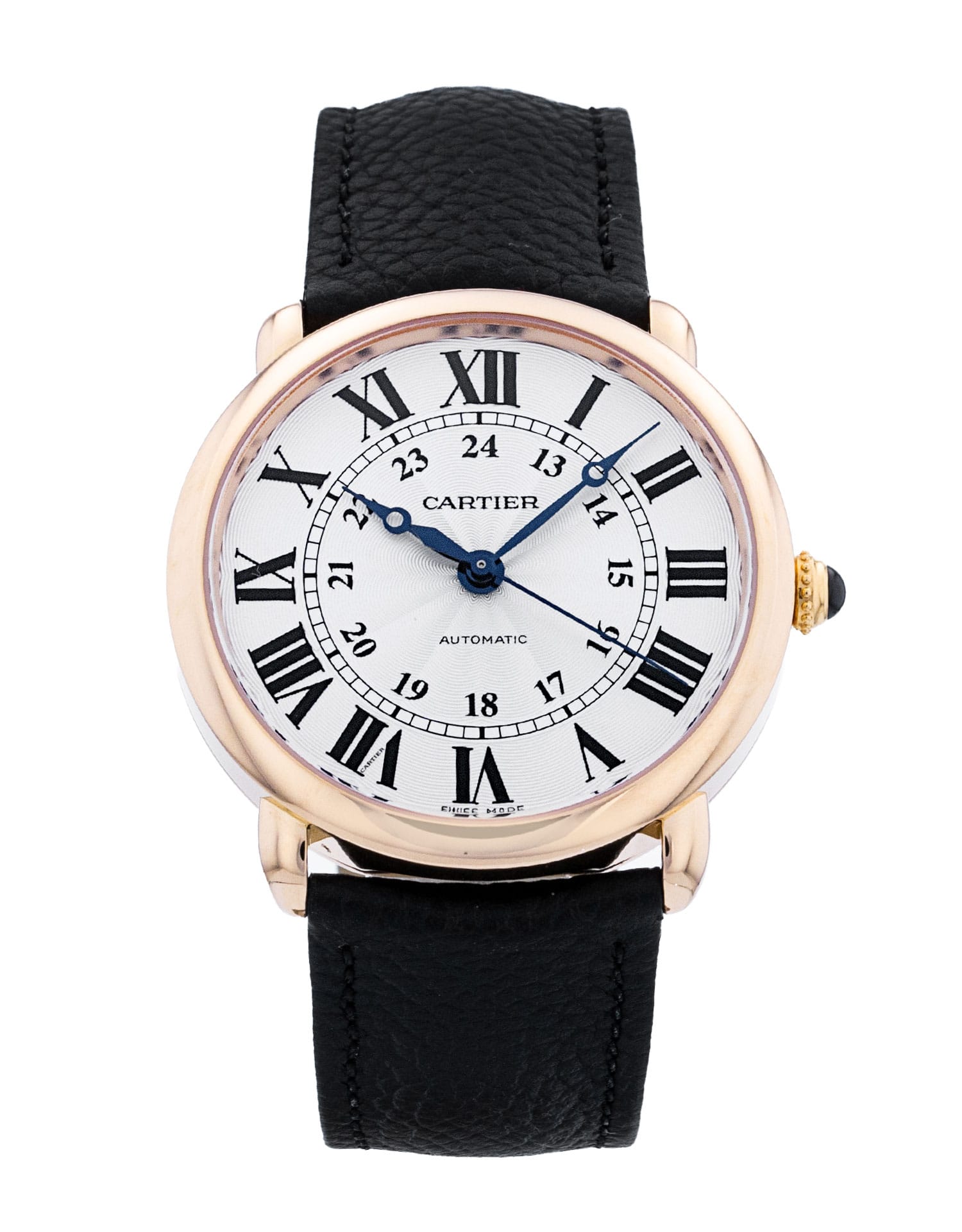 This Cartier Ronde Louis WGRN0006 has a silver roman numeral dial and a leather strap. This Cartier has undergone a thorough inspection of accuracy, functionality and condition at our Cartier certified service centre to determine the level of reconditioning required to meet our strict standards. It has also been checked against our records to ensure authenticity. All our watches have a 24-month warranty for your peace of mind.